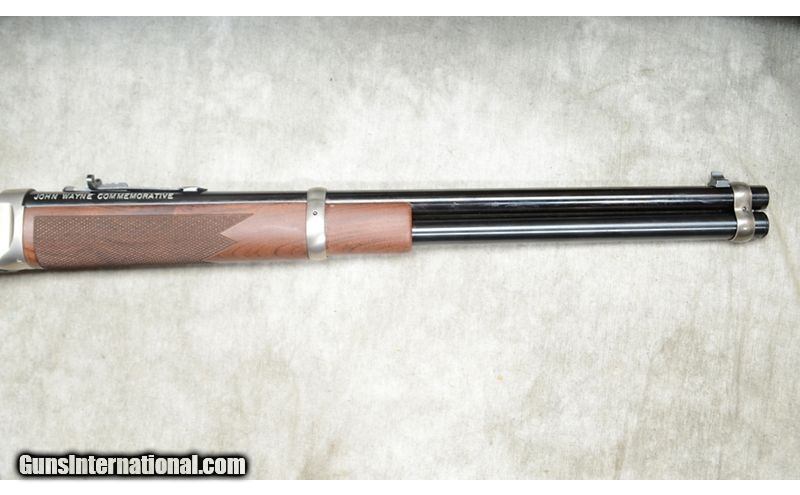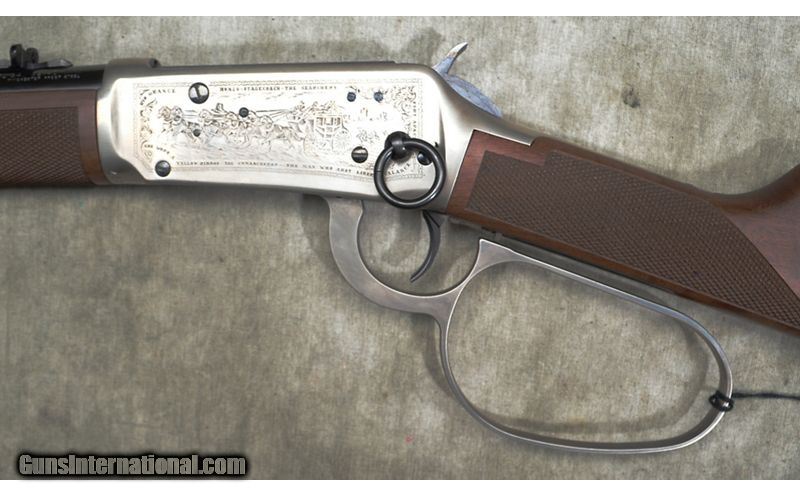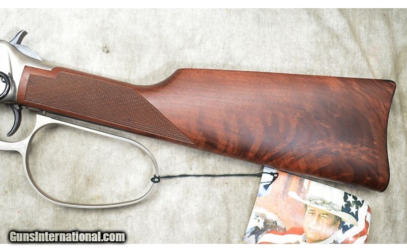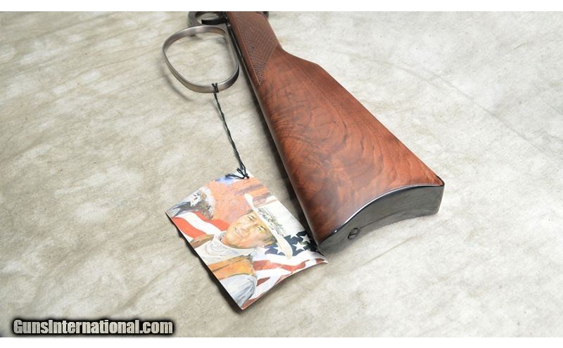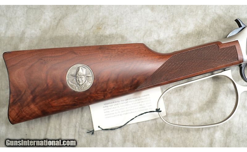 Description: This Model 94 Large Loop SRC commemorates the entertainment career of John Wayne. It features the large loop action that he made famous through many of his movies, nice checkered walnut stock, and engraved coined receiver. .32-40 Winchester SOLD Chambers: 7 Metal Condition: Like New in the Box. Wood Condition: Like New in the Box. Bore Condition: Like New in the Box. Barrels: 18_INCH. Triggers: Factory trigger. Stock Dimensions: 13-1/4 inch LOP. Fore End: Matching walnut. Butt Pad: Curved steel plate. Weight: 6 lb - 4 oz. Sights: Post and semi-buckhorn open sights. Item Location: Rogers |