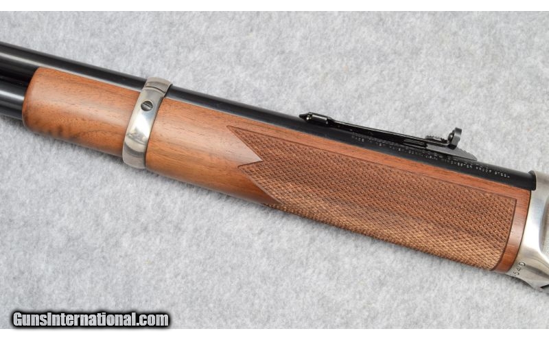 Description: Includes box. SOLD Caliber Info: .30-30 Metal Condition: Very good with scratches. Wood Condition: Very good with handling marks. Bore Condition: Shiny with good rifling. Barrels: 16 Stock: Checkered walnut. Fore End: Checkered walnut. Butt Pad: Smooth steel. Weight: 6-lbs., 1-ozs. Sights: Front blade, stepped rear blade. Item Location: Fort Worth, TX |