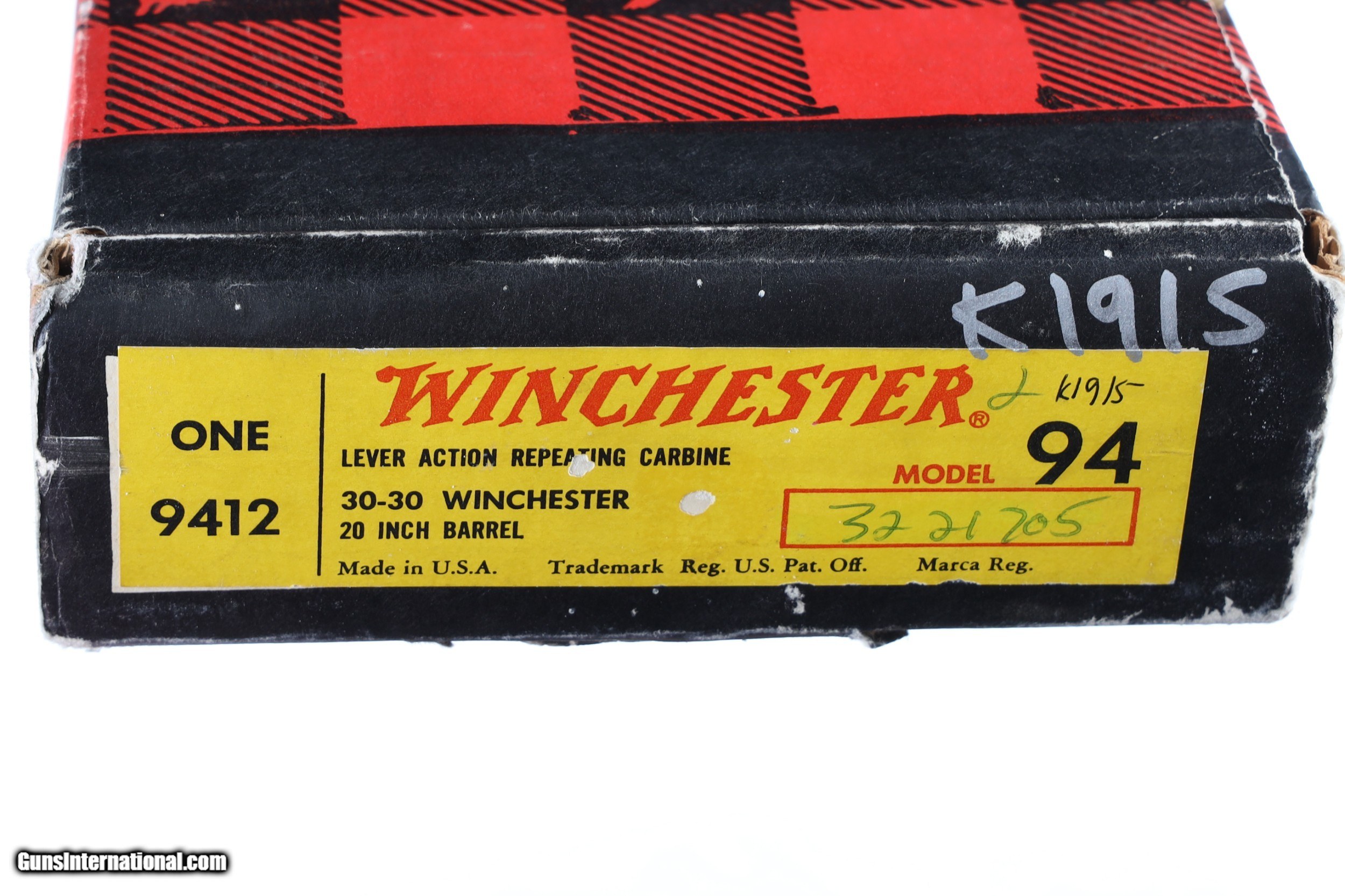Description: Like new with matching factory box, and papers. • Free Shipping, No Credit Card Fees. • Lay-a-way available for this firearm. • 1/3 Down, a 1/3 in 30 Days 1/3 in 60 Days. SOLD Manufacturer: Winchester Model: 94 Serial Number: 3221705 Barrel Length: 20 |