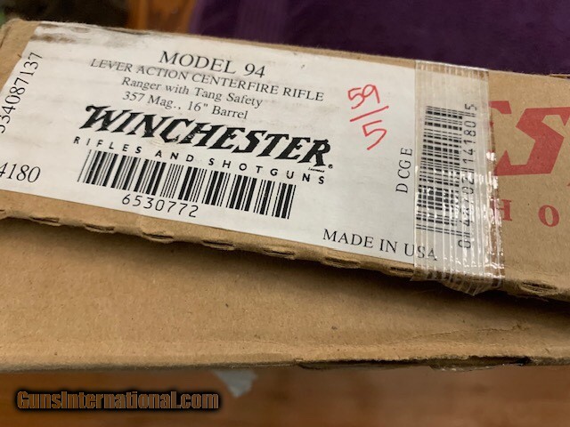 WINCHESTER 94, RANGER, 16” BARREL 357 MAGNUM CAL. NEW UNFIRED IN THE BOX WITH OWNERS MANUAL, EXTREMELY HARD TO FIND WITH 16” TRAPPER BARREL