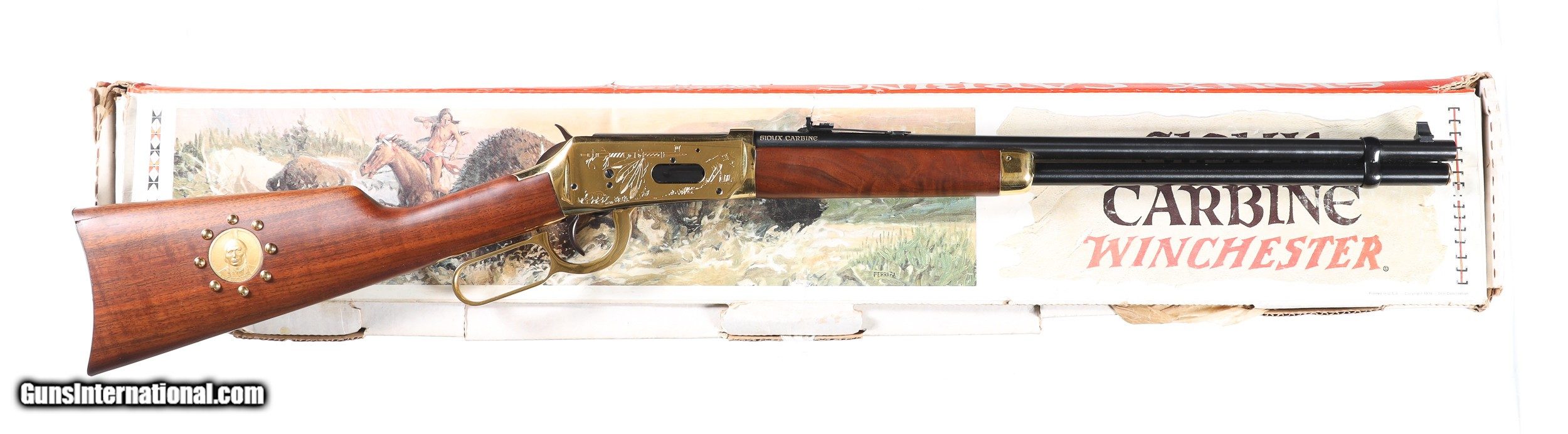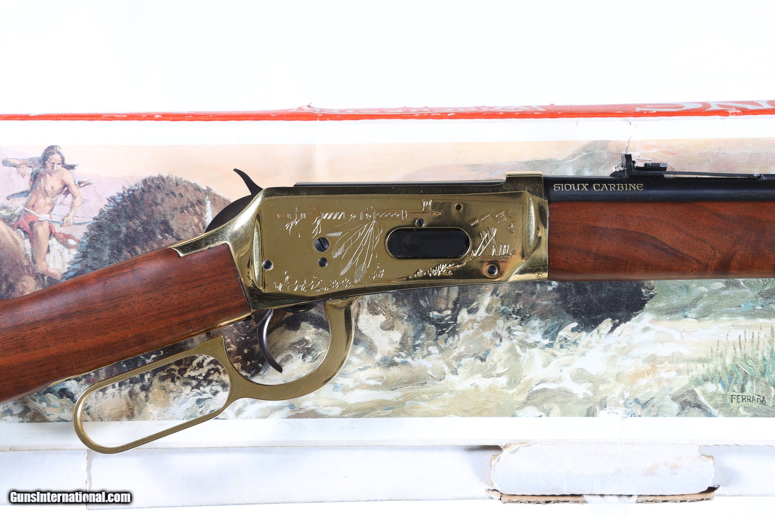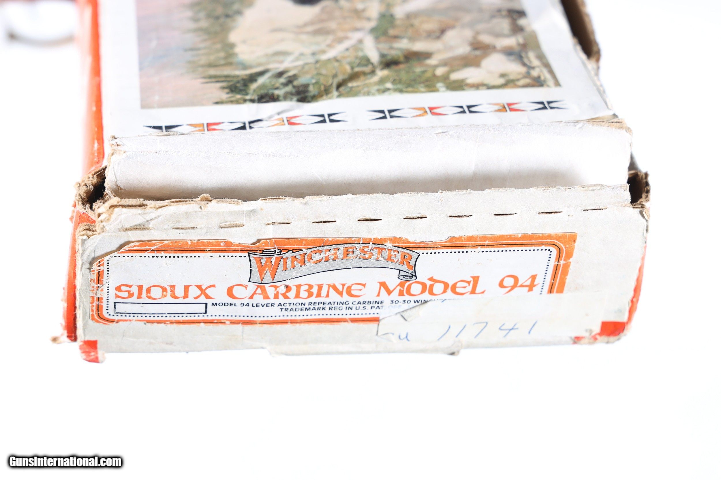 Description: Siuox Carbine Commemorative. Excellent plus overall condition in factory box numbered to gun. • Free Shipping, No Credit Card Fees. • Lay-a-way available for this firearm. • 1/3 Down, a 1/3 in 30 Days 1/3 in 60 Days. SOLD Curio/Relic: Yes Manufacturer: Winchester Model: 94 Serial Number: SU11741 Barrel Length: 20 |