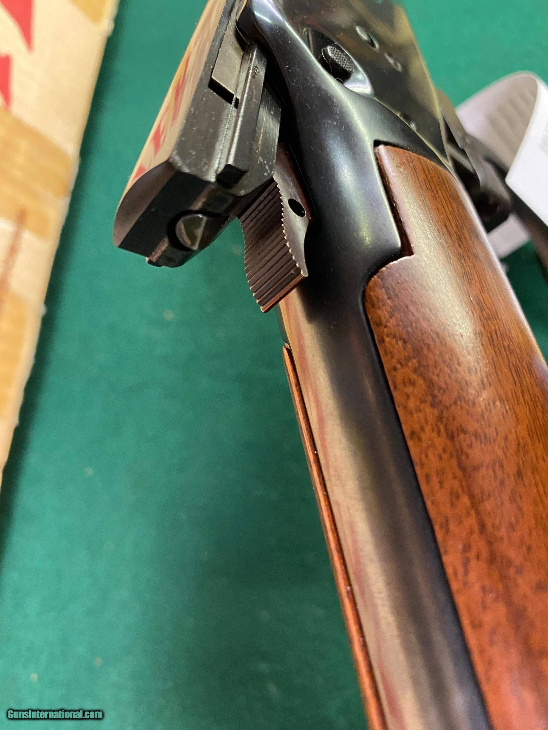 Description: Attention Winchester lever action rifle fans: Here we have a Winchester 94 trapper w/a 16 inch barrel in .44 magnum. Has the saddle ring and comes with a Winchester box. Very good to excellent condition. Please see pictures for more details. We reserve the right to sell this item at our retail location until an offer is placed on Guns International. We accept major credit cards with a 4% surcharge. We will also take personal checks however, we do not ship the item until your check clears our bank. This may mean a slight delay in shipment. Please allow us up to three business days to return emails, we have been very busy as of late. We are open Tuesday through Saturday, 9 AM to 5 PM. Closed on Sunday and Monday. We'd like to take a moment to thank you for your continuing support and patronage during these trying and troubled times! SOLD Rifle Caliber: .44 Magnum Manufacturer: Winchester Model: 94 Trapper Serial Number: 60568xx Barrel Length: 16” Condition: VG/EXC |