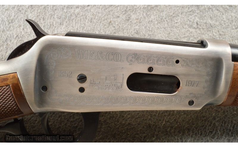 Description: This Winchester 94 Wells Fargo Commemorative is ANIB. SOLD Manufacturer: 1977 Caliber Info: .30-30 Win. Chambers: Lever action repeater. Metal Condition: ANIB. Wood Condition: ANIB. Bore Condition: ANIB. Barrels: 20 Inch round blue with sights. Triggers: Single blue. Stock: Straight grip checkered walnut with a Wells Fargo medallion. Stock Dimensions: 13 ¼ Inch LOP. Fore End: Matching checkered walnut (eastern style) Butt Pad: Blue steel butt plate. Weight: 7 Lbs 4 Oz. Sights: Front blade, adjustable rear. Extras: Comes with the factory box and hangtag. Item Location: Owatonna, MN |