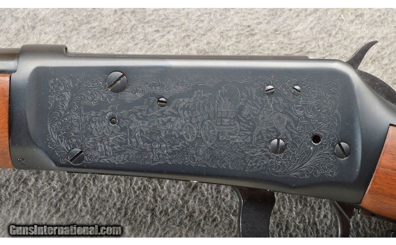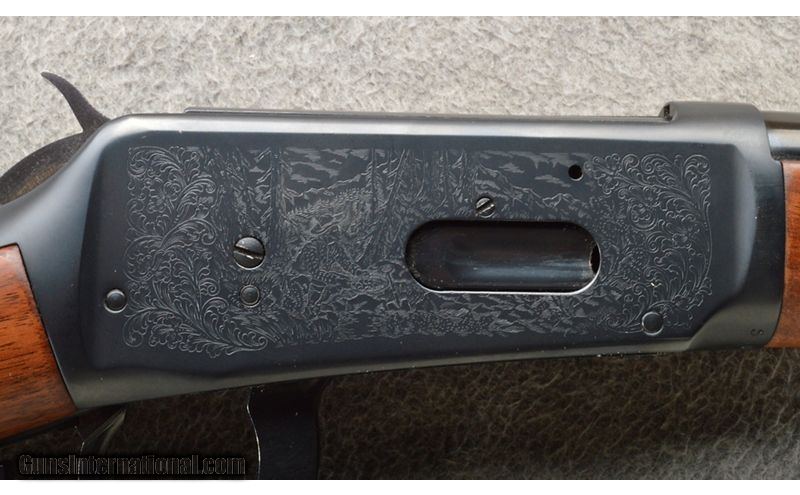 Description: This is a hard to find Winchester Wrangler Large loop Trapped Carbine in .32 Win special. The rifle does not look like it has been fired outside of the factory, but we could be wrong. This fun little carbine has a 16" blue barrel with sights and a full length mag tube. The receiver is engraved on both sides with a wagon train on one side and a gold miner on the other. The walnut stock and forearm are also in great like new condition. .32 Winchester Special SOLD Chambers: Lever action repeater. Metal Condition: Excellent with a couple of tiny marks you have to look for. Wood Condition: Excellent. Bore Condition: Bright and shiny. Barrels: 16" with factory sights. Triggers: Single blue. Stock Dimensions: 13 1/2" LOP. Fore End: Nice but plain straight grain walnut. Butt Pad: Matching walnut with a straight grip and black Winchester butt plate. Weight: 5 lbs. 12 oz. Sights: Adjustable semi-buckhorn rear with an elevator and blade front. Item Location: Owatonna, MN |