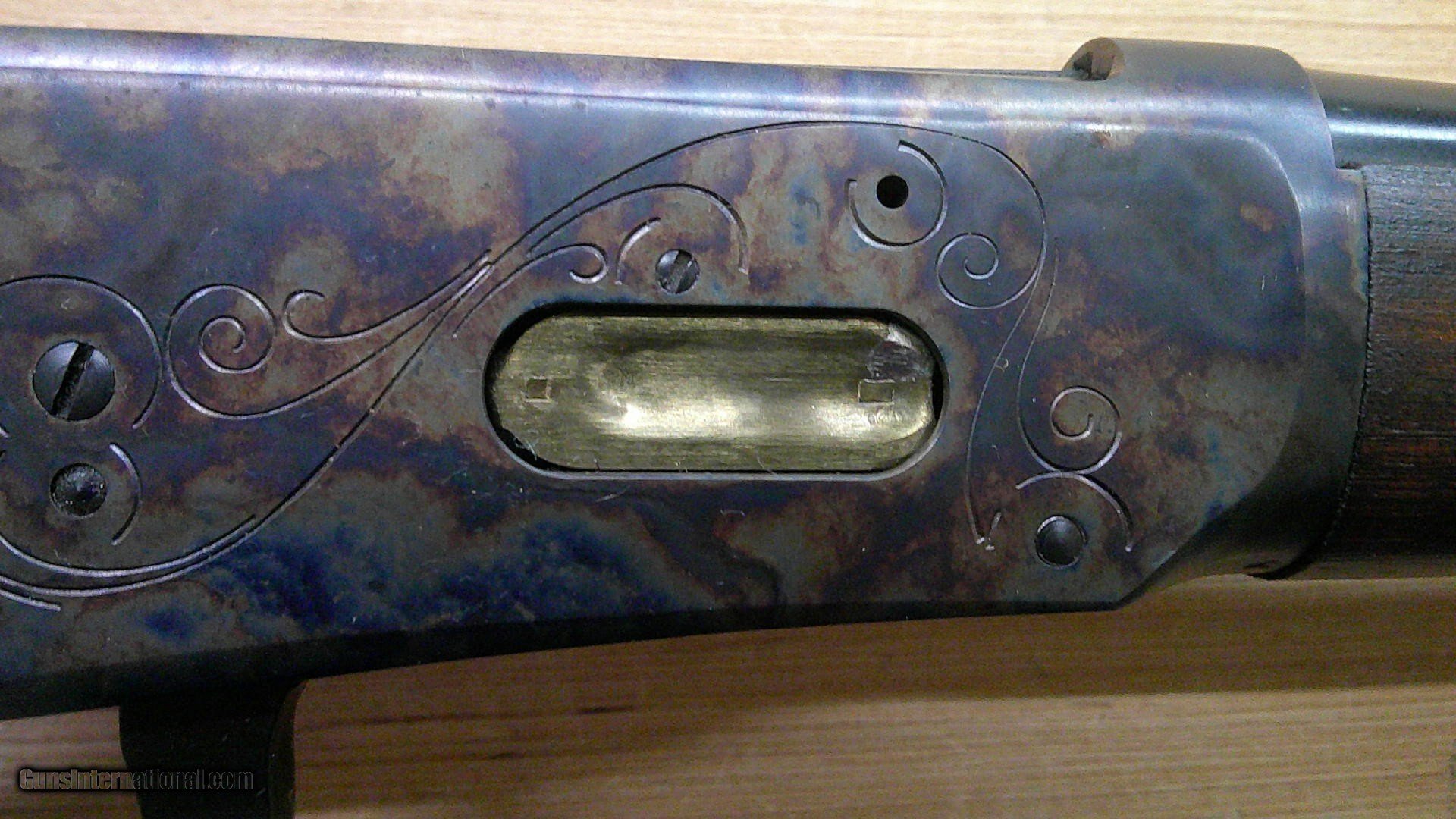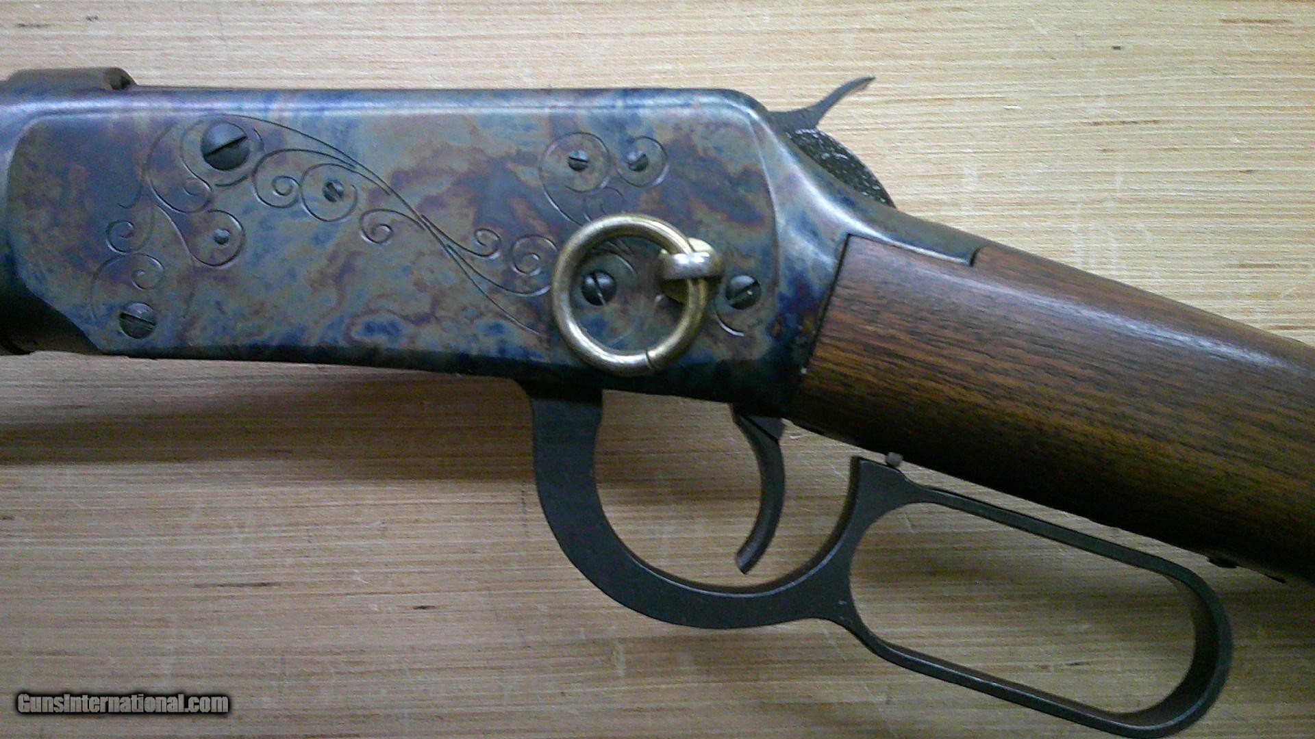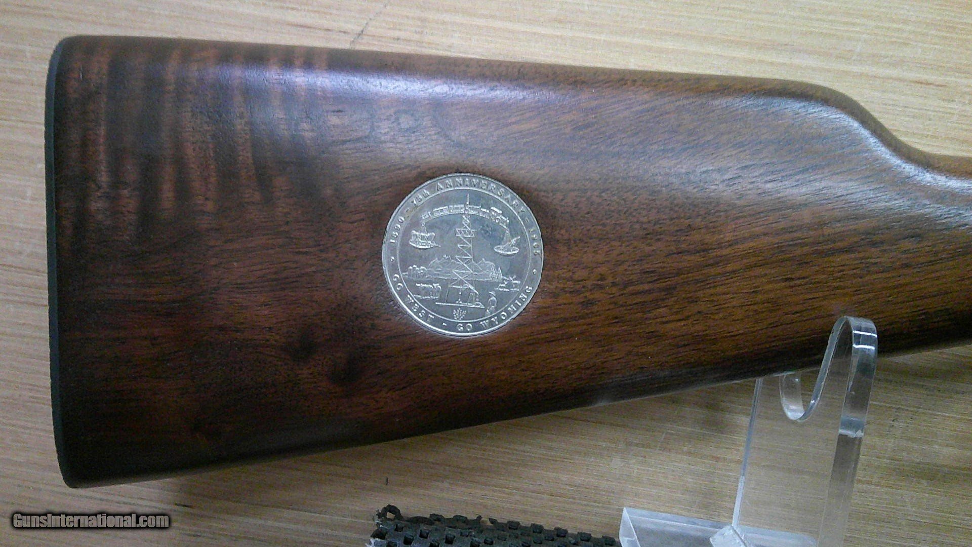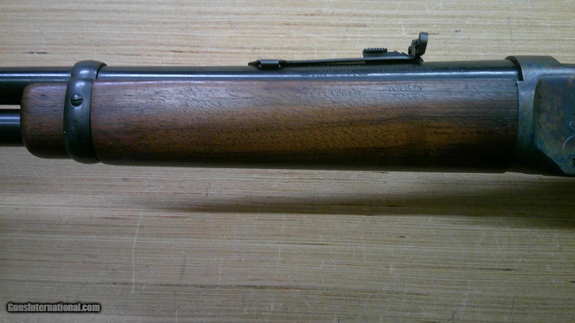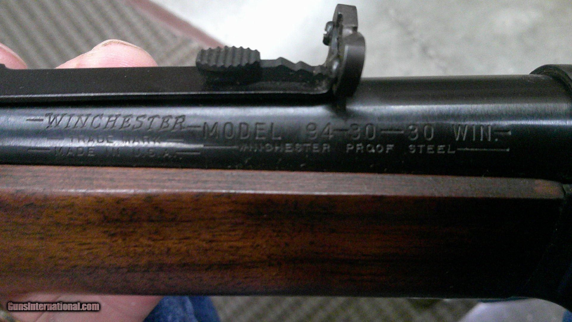 Description: CONSIGNMENT EXCELLENT CONDITION Winchester 94 Wyoming Diamond Jubilee .30-30 Win caliber 20" Barrel, Commemorative rifle. Blued finish. Color case hardened receiver. Top of barrel stamped "Wyoming Jubilee 1890-1965" "75th Anniversary of Statehood". Engraved receiver. Walnut stock with 75th Anniversary medallion.Serial # WJ733 WITH FACTORY BOX, MANUAL, WARRANTY CARD & CERTIFICATE AND "The Gun That Won the West" certificate also THERE IS A LITTLE OF THE PLATING MISSING OFF OF THE LOADING GATE (SEE PHOTO # 12) We would suggest insurance on this one. ****PLEASE CALL IN THE WITH THE SELLER’S INVENTORY NUMBER IF INQUIRING ABOUT A FIREARM****** WE DO NOT SHIP FIREARMS AND/OR FIREARMS’ PARTS OUT OF THE 50 UNITED STATES, SO DON’T ASK—YOU NEED TO KNOW IF FIREARM IS LEGAL FOR YOUR STATE PRICE REFLECTS PAYMENT BY MONEY ORDER / CASHIERS CHECK. A 3% PREMIUM IS ADDED FOR CREDIT CARDS. WE DO ACCEPT PERSONAL OR BUSINESS CHECKS, BUT THERE IS A GRACE PERIOD OF 10 BUSINESSS DAYS ON THEM. Shipping is $60 for handgun and $50 for long gun. Shipping to Alaska and Hawaii will be more based on weight of firearm. USPS SHIPPING IS HIGHER. WE DO OFFER LAYAWAY PLANS FOR 30,60, OR 90 DAYS.NOT ON CONSIGNMENT GUNS THERE IS A $5.00 CHARGE FOR EVERY 30 DAYS ITEM IS ON LAYAWAY. WE ALSO REQUIRE A 20% DOWN PAYMENT ON TOTAL OF LAYAWAY SALE. LAYAWAYS ARE NON- REFUNDABLE. HERE IS HOW THIS PROCESS WORKS. YOU WOULD CALL US AT 540-337-9218 WITH LISTER # TO PURCHASE THE GUN. THEN ONCE I HAVE RECEIVED PAYMENT AND AN FFL (FEDERAL FIREARMS LICENSE) FROM A LICENSED DEALER IN YOUR AREA OF YOUR CHOICE. WE WILL THEN SHIP THE GUN TO THEM. YOU WOULD THEN PICK UP THE GUN AT YOUR LOCAL DEALER AND DO PAPER WORK THERE. Please have your FFL Dealers contact information when you call. DOMINION OUTDOORS 15 ANGELA COURT FISHERSVILLE, VA 22939 540-337-9218 540-337-2422 fax M – F 9 a.m. to 6 p.m. ETZ Sat 9 a.m. to 4 p.m. ETZ ****PLEASE CALL IN THE WITH THE SELLER’S INVENTORY NUMBER**** ***PLANO HARD CASES AVAIABLE FOR PURCHASE $25.00 WITH THE PURCHASE OF A FIREARM** *** Online prices compared to in store prices will vary. *** SOLD |