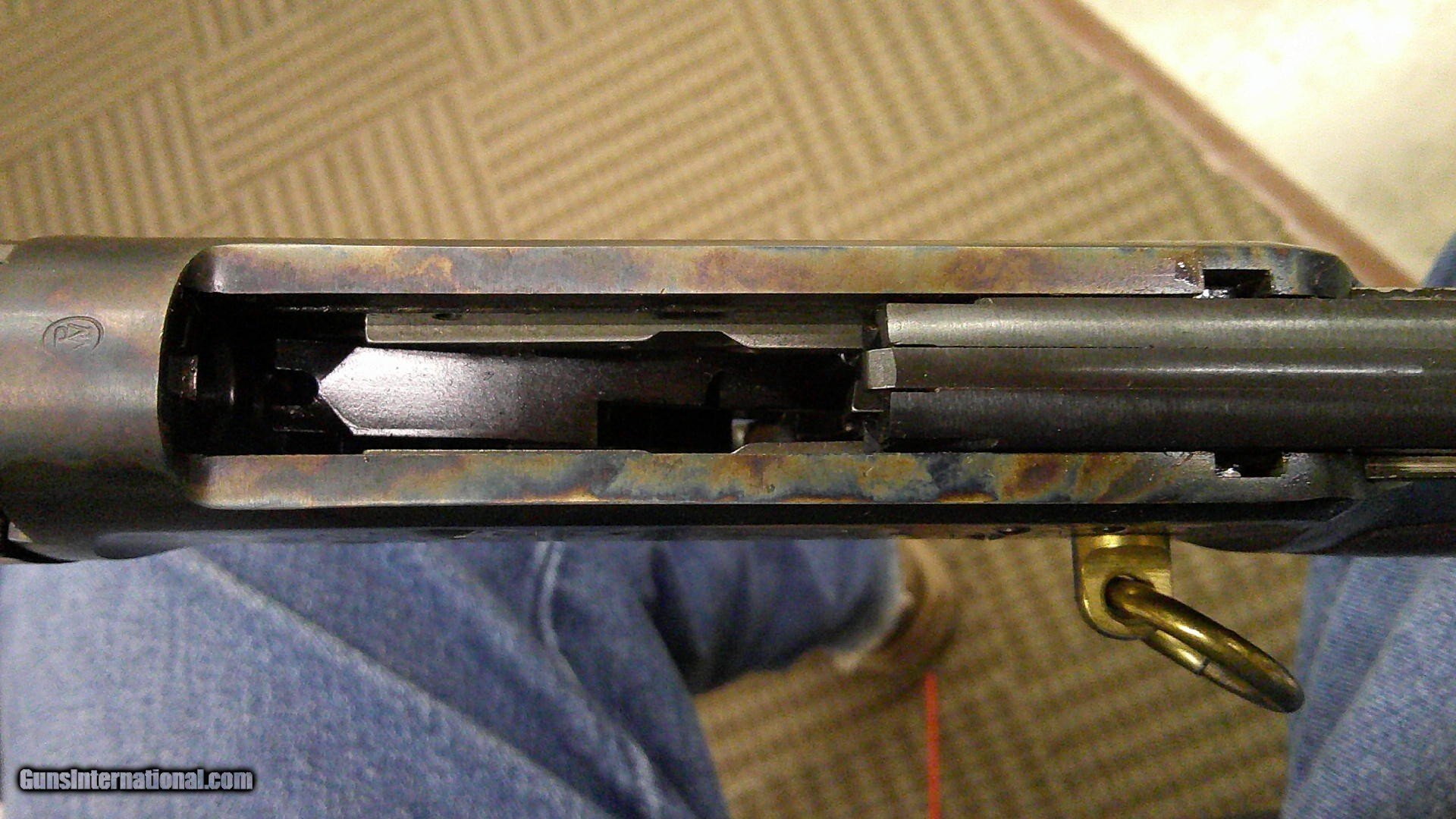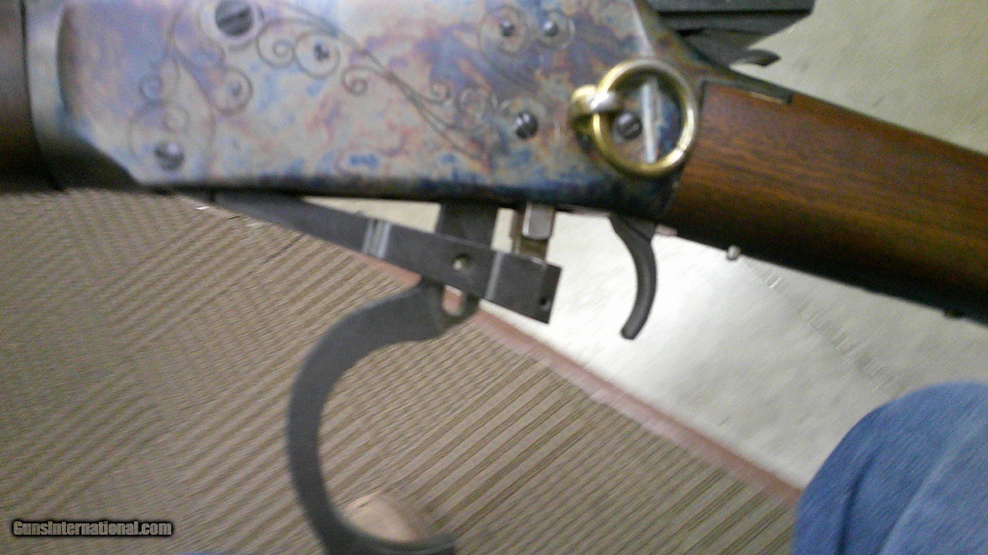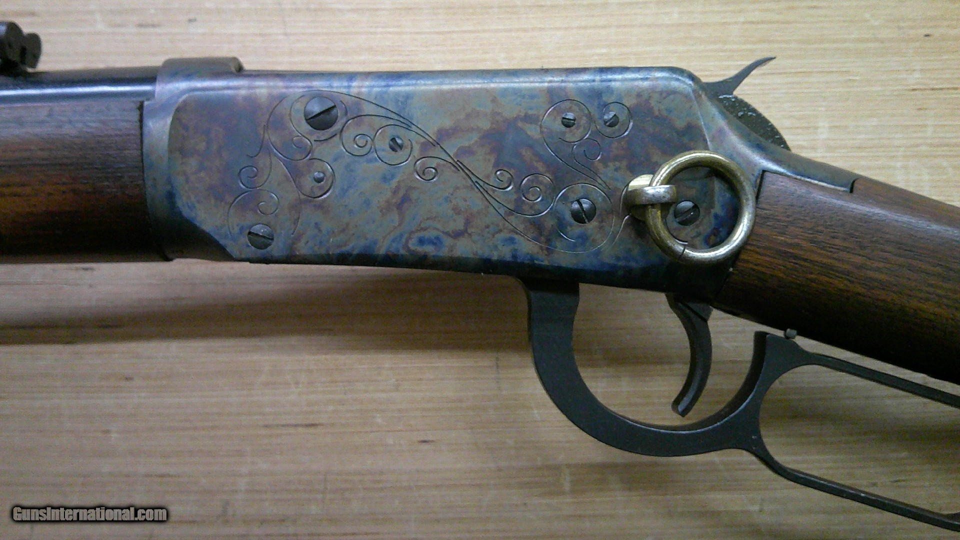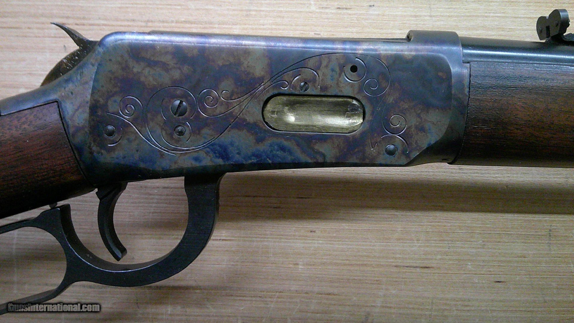 Description: CONSIGNMENT EXCELLENT CONDITION Winchester 94 Wyoming Diamond Jubilee .30-30 Win caliber 20" Barrel, Commemorative rifle. Blued finish. Color case hardened receiver. Top of barrel stamped "Wyoming Jubilee 1890-1965" "75th Anniversary of Statehood". Engraved receiver. Walnut stock with 75th Anniversary medallion.Serial # WJ733 WITH FACTORY BOX, MANUAL, WARRANTY CARD & CERTIFICATE AND "The Gun That Won the West" certificate also THERE IS A LITTLE OF THE PLATING MISSING OFF OF THE LOADING GATE (SEE PHOTO # 12) We would suggest insurance on this one. ****PLEASE CALL IN THE WITH THE SELLER’S INVENTORY NUMBER IF INQUIRING ABOUT A FIREARM****** WE DO NOT SHIP FIREARMS AND/OR FIREARMS’ PARTS OUT OF THE 50 UNITED STATES, SO DON’T ASK—YOU NEED TO KNOW IF FIREARM IS LEGAL FOR YOUR STATE PRICE REFLECTS PAYMENT BY MONEY ORDER / CASHIERS CHECK. A 3% PREMIUM IS ADDED FOR CREDIT CARDS. WE DO ACCEPT PERSONAL OR BUSINESS CHECKS, BUT THERE IS A GRACE PERIOD OF 10 BUSINESSS DAYS ON THEM. Shipping is $60 for handgun and $50 for long gun. Shipping to Alaska and Hawaii will be more based on weight of firearm. USPS SHIPPING IS HIGHER. WE DO OFFER LAYAWAY PLANS FOR 30,60, OR 90 DAYS.NOT ON CONSIGNMENT GUNS THERE IS A $5.00 CHARGE FOR EVERY 30 DAYS ITEM IS ON LAYAWAY. WE ALSO REQUIRE A 20% DOWN PAYMENT ON TOTAL OF LAYAWAY SALE. LAYAWAYS ARE NON- REFUNDABLE. HERE IS HOW THIS PROCESS WORKS. YOU WOULD CALL US AT 540-337-9218 WITH LISTER # TO PURCHASE THE GUN. THEN ONCE I HAVE RECEIVED PAYMENT AND AN FFL (FEDERAL FIREARMS LICENSE) FROM A LICENSED DEALER IN YOUR AREA OF YOUR CHOICE. WE WILL THEN SHIP THE GUN TO THEM. YOU WOULD THEN PICK UP THE GUN AT YOUR LOCAL DEALER AND DO PAPER WORK THERE. Please have your FFL Dealers contact information when you call. DOMINION OUTDOORS 15 ANGELA COURT FISHERSVILLE, VA 22939 540-337-9218 540-337-2422 fax M – F 9 a.m. to 6 p.m. ETZ Sat 9 a.m. to 4 p.m. ETZ ****PLEASE CALL IN THE WITH THE SELLER’S INVENTORY NUMBER**** ***PLANO HARD CASES AVAIABLE FOR PURCHASE $25.00 WITH THE PURCHASE OF A FIREARM** *** Online prices compared to in store prices will vary. *** SOLD |