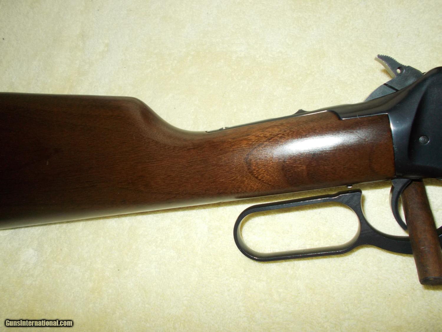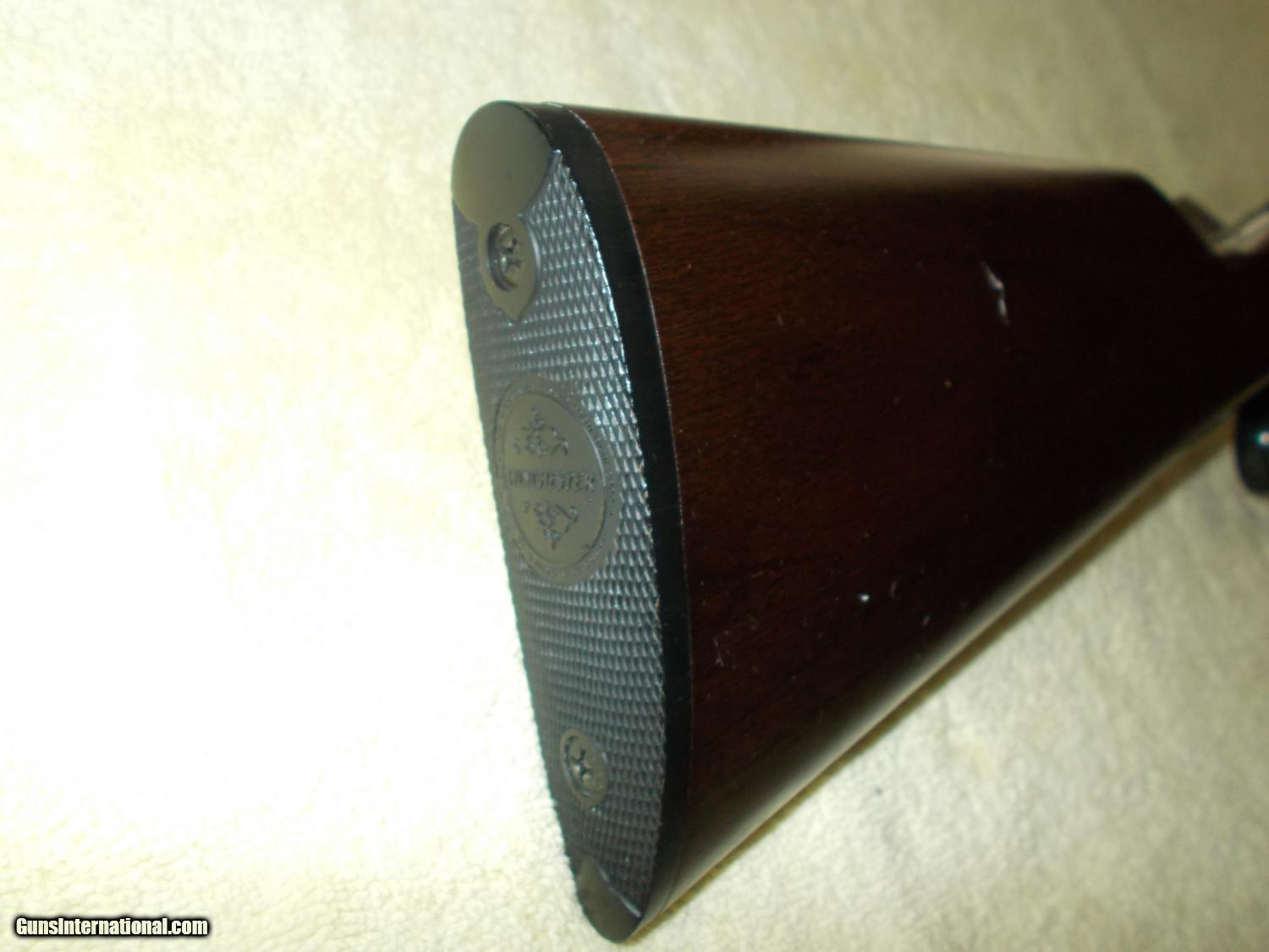 Description: 20" carbine bbl., end bbl. band, Buckhorn style sights, angle eject, preminum grade American non-checkered walnut straight stock, 99% overall SOLD |