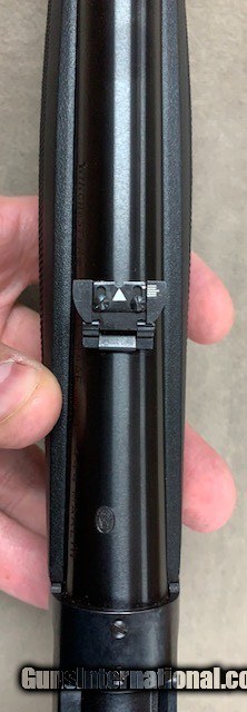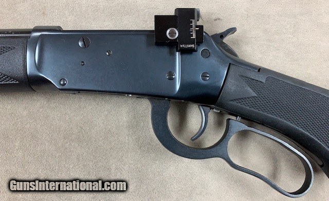 Description: A rather rare and hard to find Wincheser Model 94AE Black Shadow .444 Marlin Caliber Rifle, equipped with a William's Receiver Sight mounted in factory drilled and tapped mounting holes, and with a factory black synthetic stock and forearm. I would rate the entire rifle at 99% condition and with a perfect bore and chamber. Only one we've encountered in many years. SOLD |