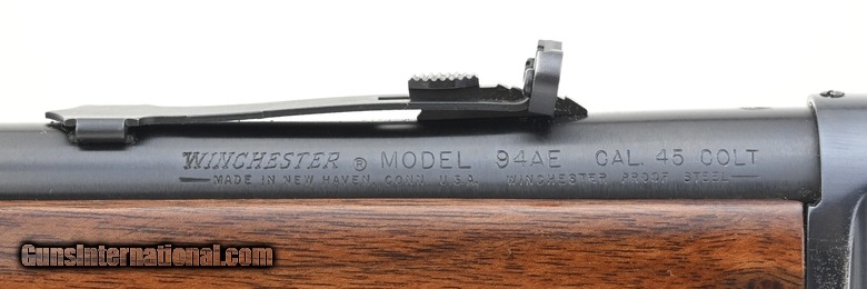 Description: Winchester 94AE .45 Colt caliber rifle. Popular 16” trapped made in 1994. Has the centennial mark “1894-1994” on the receiver. Excellent condition with box.