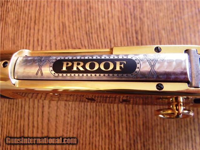 Description: RED BEAR GUNS The Gun: Winchester / Investment Arms Gold Plated 94AE Kosciusko County, Indiana Commemorative Rifle in .45 Colt Accessories: Red Velvet Sleeve Condition: NRA: New Blue Book: 100% Additional Information: This fantastic, unfired and un-cycled gold-plated commemorative rifle came in from an estate. Originally produced and commissioned from Winchester by Investment Arms of Colorado, these county commemorative rifles are extremely rare with only ten produced of each type, including a PROOF rifle – which this is one. The PROOF numbered rifles are of course the most collectible of this series, and we have yet to see even a Kosciusko County, Indiana numbered version for sale in recent years. This is a one-of-a-kind rifle with no equal. This rifle shows beautifully and we see no defects in the gold plating or heavily engraved stocks. See photos for details of the inscriptions and engravings. INVESTMENT ARMS INC. : Company specializing in limited/special editions located in Fort Collins, CO. Investment Arms Inc. subcontracted various gun manufactures to produce their own limited editions/special editions. These guns are typically limited by county or state, and feature various engraving motifs, configurations, and other embellishments. TRANSACTION DETAILS: By and purchasing anything from Red Bear Gun s, you as a Buyer agree to our Terms of Sale. We assume no legal liability for any errors or omissions in the description of any item. No items are being offered for sale where any Federal, State or Local Law prohibits them from being sold. It is your responsibility to know your local laws! If this item is not legal in your area, please do noton it. We only make visual inspections for selling description purposes. No firearms we sell have been test fired by us and are sold as-is. If a Buyer wishes to fire or use any firearm purchased from us for any purpose other than display, the Buyer must have that firearm and all its features related to shooting and safe handling inspected and certified for safe shoot ability or other specific use desired by a FEDERALLY LICENSED GUNSMITH of their choosing. Such certification shall be between the BUYER and that FEDERALLY LICENSED GUNSMITH. A signed copy of an FFL license is required for shipping to the address on the license. The FFL license must be signed and sent by mail, faxed, or e-mailed to us at: red_bearjuno. WE SHIP TO CALIFORNIA (For qualified items only) !!! PAYMENT: We will hold items five (5) business days for the payment confirmation of the purchased item and its shipping cost, license receipt and any other documentation required to complete the transaction. We prefer bank checks, postal money orders, VISA or Mastercard. Credit cards add 3% to total cost. Personal checks are deposited for 10 business days before the item is shipped. Colorado purchases are subject to 7.4% sales tax if no resale certificate is presented. Please make checks/money orders out to: Red Bear Gun s. SHIPPING: We normally ship handguns and long guns via the USPS and FedEx. Hand guns are normally sent by USPS Priority Rate, Insured, with Delivery Confirmation. Long guns can be shipped FedEx Ground or USPS Priority / Insured. The shipping cost will be ACTUAL SHIPPING COSTS to your location. Most hand guns run about $20.00 and most long guns run between $25.00 and $45.00 depending on weight and method of shipping you choose. Small items (receivers, parts, etc) are shipped Priority or Parcel and typically range from $5.00 to $10.00. SOLD Manufacturer: Winchester Model: 94AE |