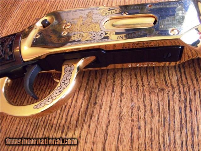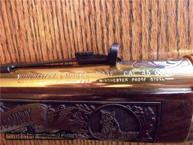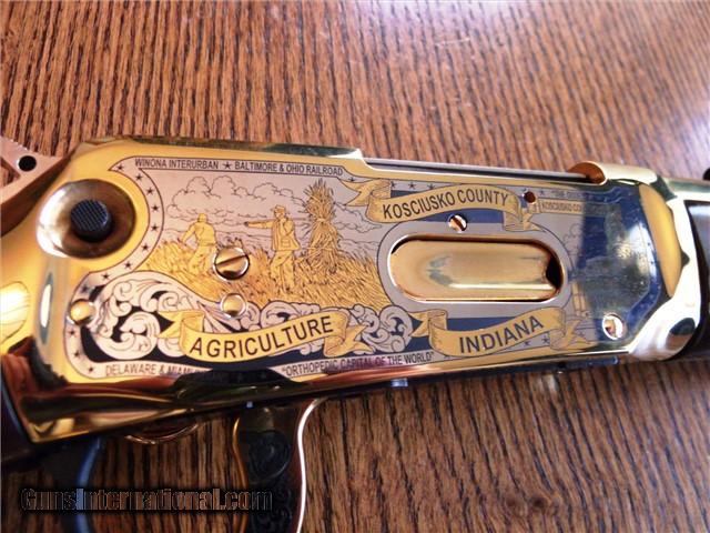 Winchester 94AE Kosciusko Indiana Gold Plated Engraved Rifle in .45 Colt