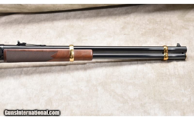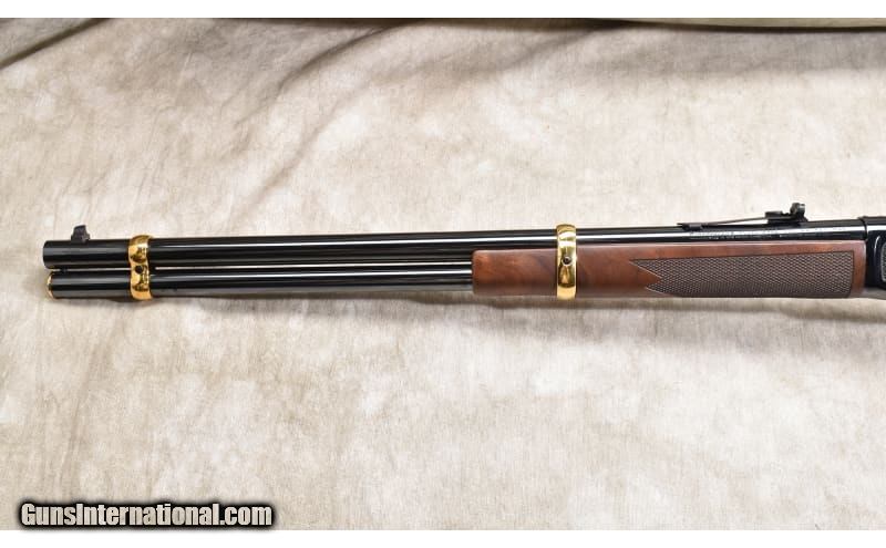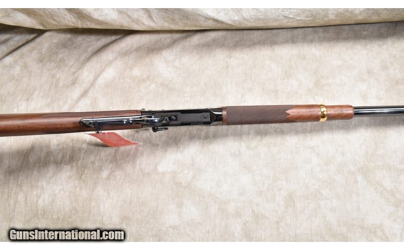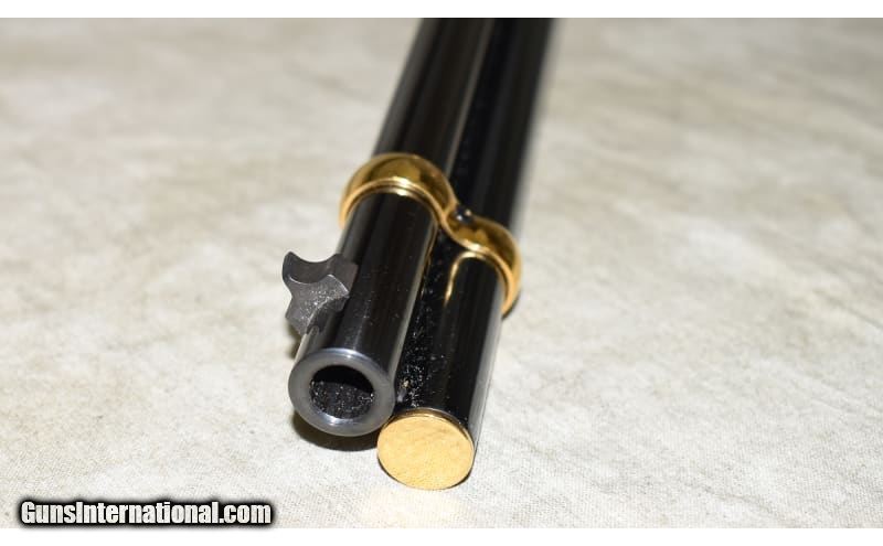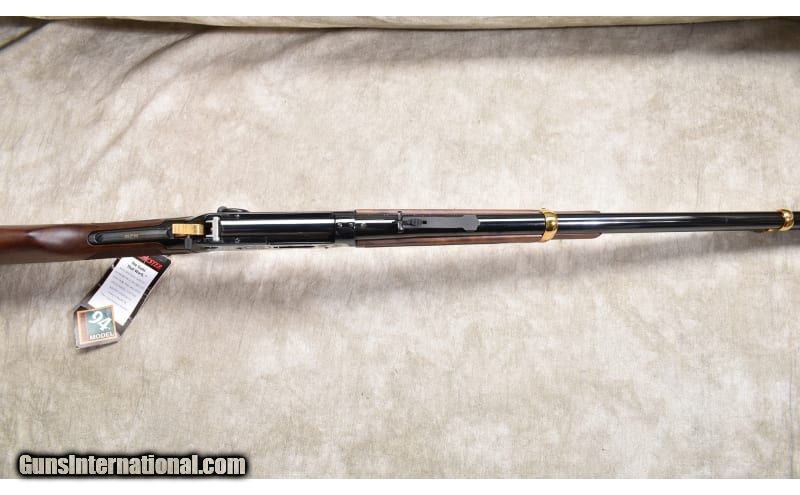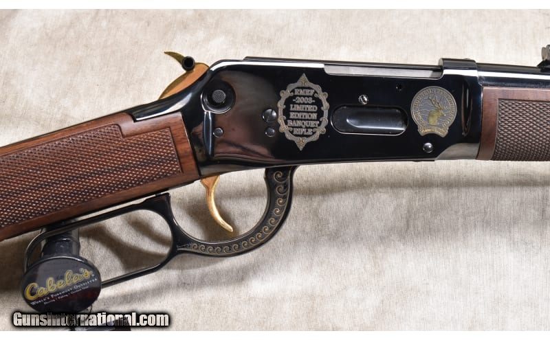 Description: This SRC features cross-bolt safety, nice walnut stock with sharp checkering, gold-filled engraving/plating on receiver, lever, barrel band, and mag cap. The rifle is labeled as a Limited Edition Rocky Mountain Elk Foundation banquet rifle. Appears unfired. .44 Remington Magnum SOLD Chambers: 9 Metal Condition: Excellent. Wood Condition: Excellent. Bore Condition: Shiny and bright with good rifling. Barrels: 20 inch Triggers: Factory trigger. Stock Dimensions: 13-1/4 inch LOP. Fore End: Checkered walnut. Butt Pad: Curved steel plate. Weight: 6 lb - 9 oz. Sights: "Post and semi-buckhorn open sights, drilled and tapped for scope. Item Location: Rogers |