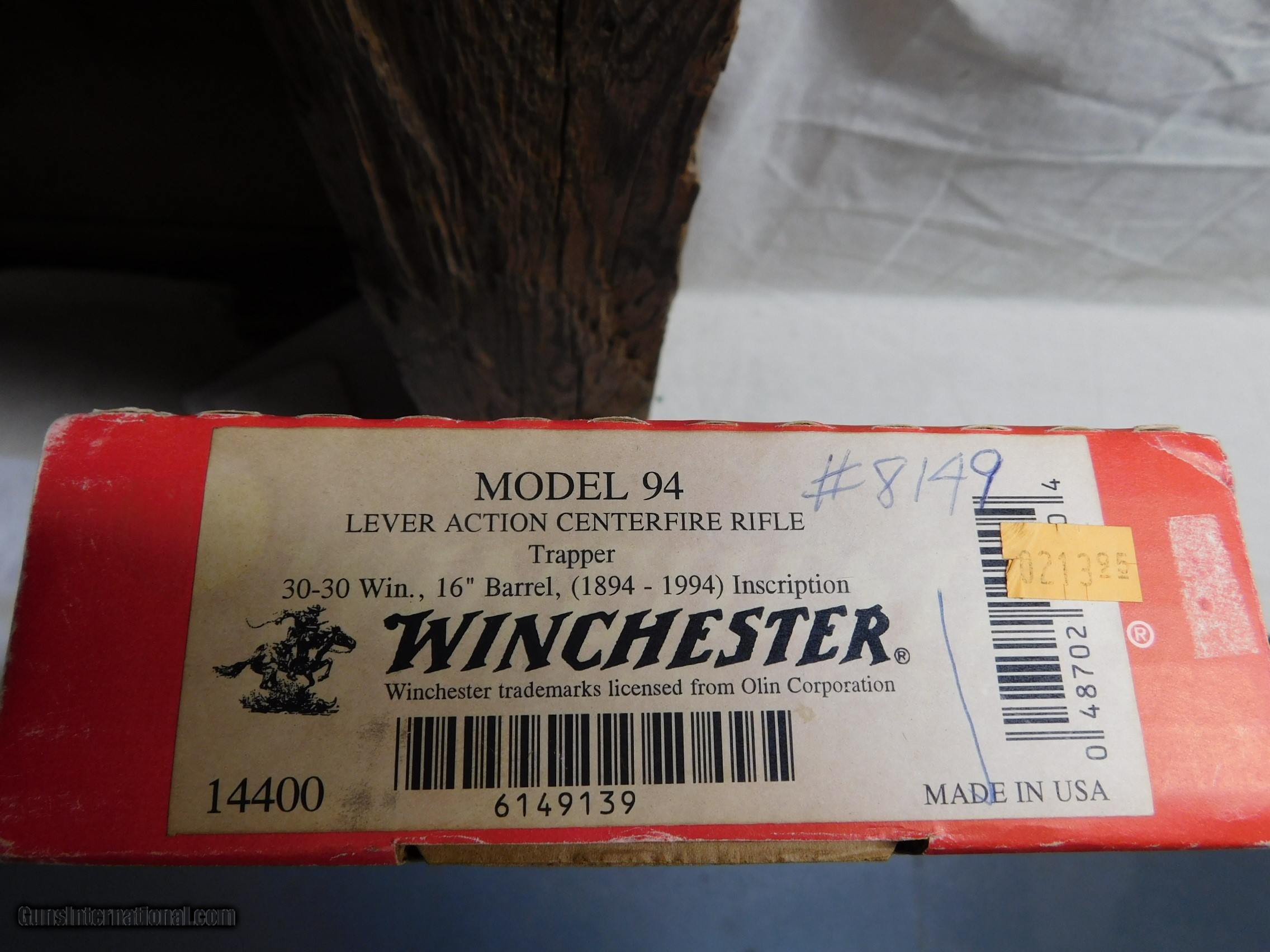Description: Winchester 94AE Trapper,30-30 Win, 16-1\4" Barrel,Full Magazine,1894-1994 Inscription on Reciever, New Unfired in Box with Papers and Hang Tag!! Store hours Thurs-Fri-10AM-8PM Sat-9AM-12PM All Other times please leave a message,Thank You! No California Sales Lower 48 State Sales only Pa. Residents 6% Sales Tax applicable Shipping $ 35.00 SOLD Manufacturer: Winchester Model: 94AE Trapper Serial Number: 6149139 Caliber Info: 30-30 |