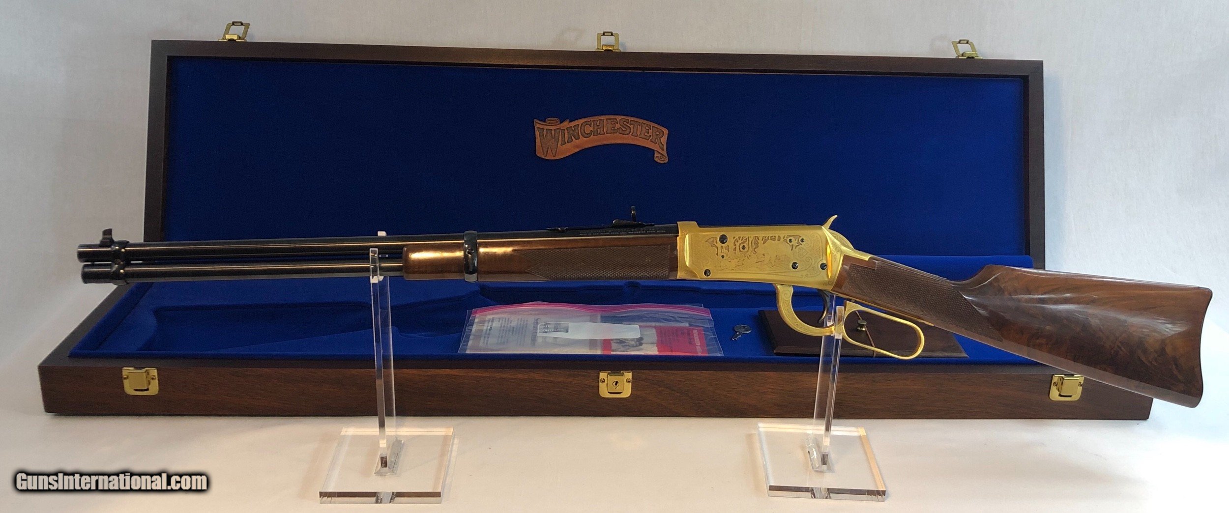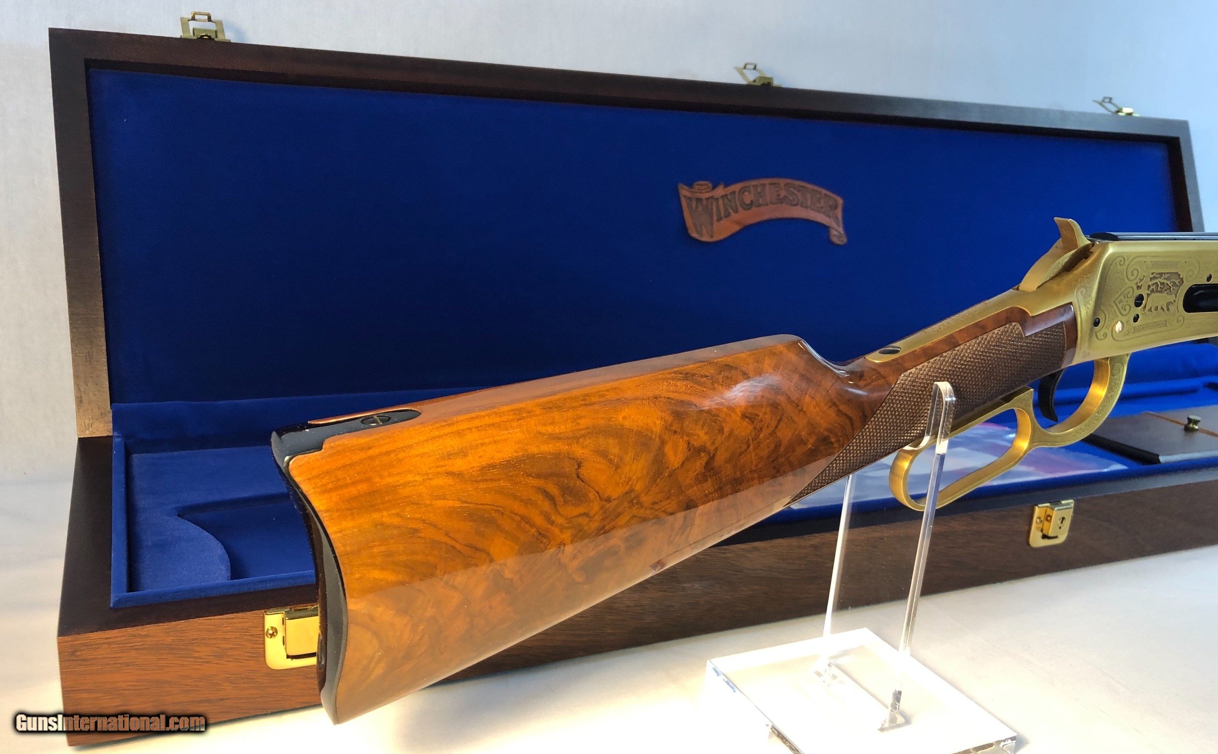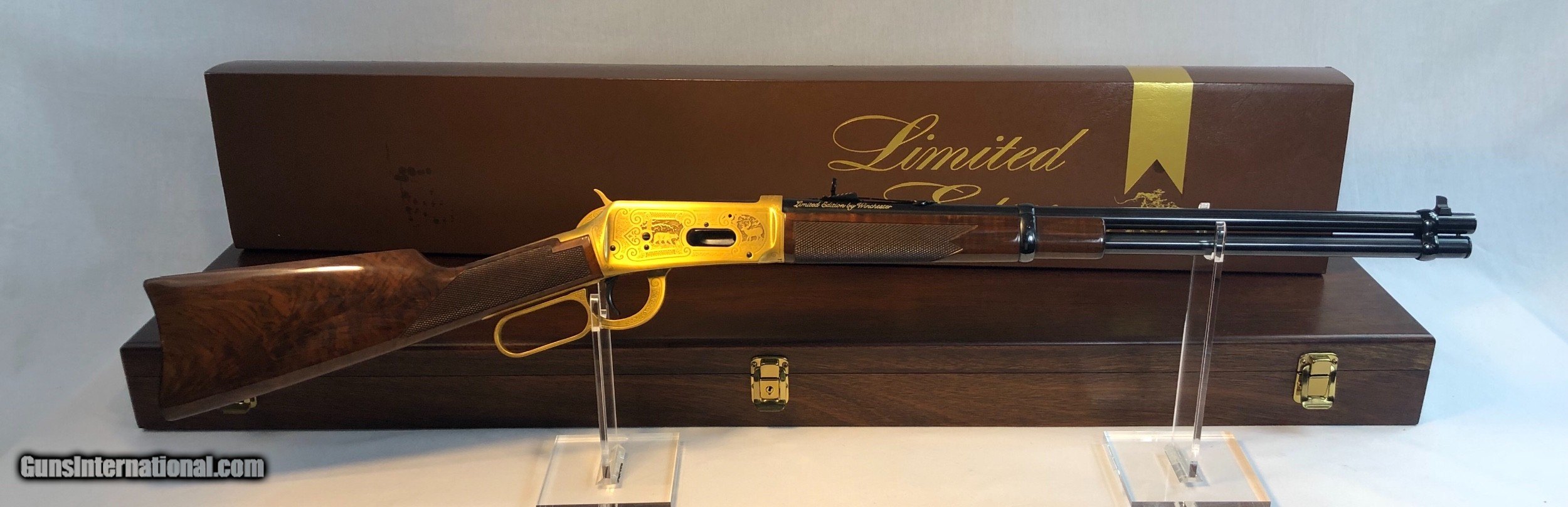 Description: Manufactured in 1977 this carbine is beautifully engraved on both sides of the receiver with deer, mountain lion, and bear scenes. The stock and forearm are walnut with a high gloss finish. This gun is NIB and has not been fired. It is in mint condition. It comes with the original box, paperwork and an additional walnut presentation case with red velvet lining. This item requires (2) packages for shipping due to walnut presentation case must ship seperatley. Ground shipping is included to the lower 48 states. This gun is sold as a collectors item only and we make no guarantees to its quality or functionality. This firearm should be checked by a qualified gunsmith before firing. Seller bears no responsibility for the functionality of this firearm. Please know and abide by your local laws in regards to purchasing firearms. This firearm must ship to buyers approved FFL holder. SOLD Manufacturer: Winchester Model: 94 Serial Number: 77L941 Caliber Info: 30-30 Condition: Excellent |