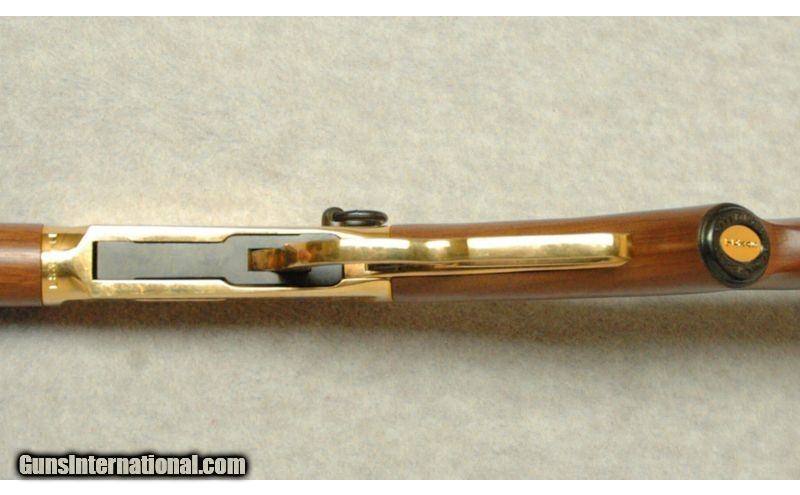 Description: Winchester Lone Star Commemorative Model 94 Rifle, .30-30 Win. Excellent condition with box. 20" Half octagon, half round barrel, gold color frame and hightlights. A good choice for Texas or Winchester collectors. SOLD Caliber Info: .30-30 Winchester. Chambers: Lever action. Metal Condition: Excellent, few light handling marks. Wood Condition: Stock is in excellent condition. Bore Condition: Bright. Barrels: 20" Barrel. Triggers: Factory trigger. Stock: Semi gloss finish, medallion inset RS. Stock Dimensions: 13 1/4" LOP. Fore End: Smooth with metal cap. Butt Pad: Curved metal butt plate. Weight: 7 Lbs. Sights: Iron sights. Extras: With box. Item Location: La Vista, NE |