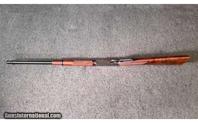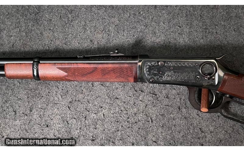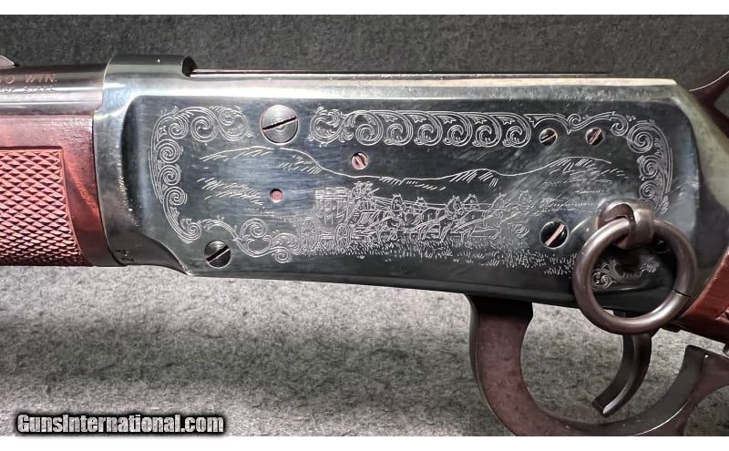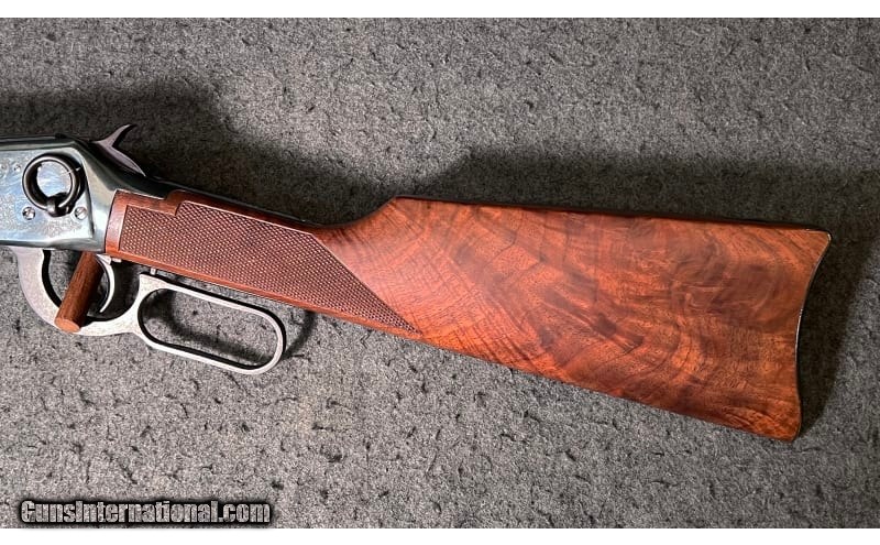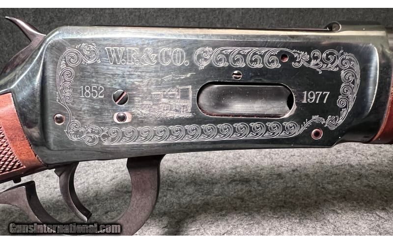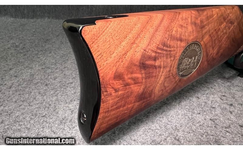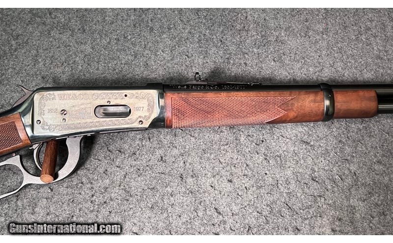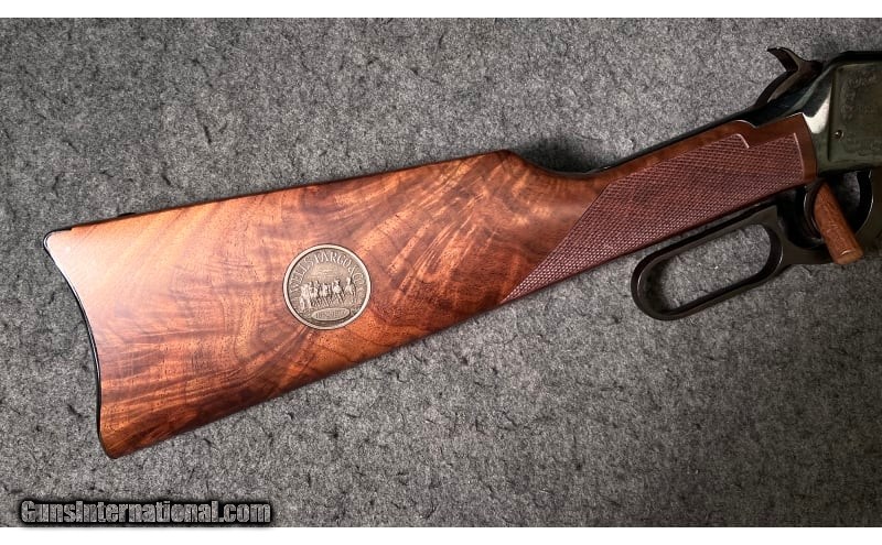 Description: This 1852 - 1977 Wells Fargo Commemorative lever action rifle is a Winchester® Model 1894 chambered in .30-30 Winchester. It has 20" round barrel, a left-side saddle ring, a fixed blade front sight, an adjustable U-notch butterfly rear sight, a smooth curved trigger, a serrated hammer, a diamond checkered round fore arm, a 7-round full length tubular magazine with a side-loading gate, and an ebony steel crescent butt plate. This particular rifle features exquisitely marbled walnut on both the fore arm and the butt stock. The bluing is in excellent condition overall, with some loss on the top of the receiver adjacent to the action. The wood fore arm and butt stock are in excellent condition with no noticeable handling wear, chips, cracks, or scratches. The bore is very bright and shiny with strong rifling intact. The Model 1894 Lever-Action Rifle is an American icon, recognized all over the world for its simple and reliable function. The Winchester® Model 1894 possesses a long and noble history and is considered by many historians to be the ultimate lever-action design. This Winchester® Model 1894 Lever-Action Rifle is one of the most proven hunting rifles ever made. The lightweight and fast handling 1894 delivers reliable, rapid fire with cartridges powerful enough for deer, bear, and hogs. .30-30 Winchester SOLD Chambers: "7-round full length tubular, side loading gate magazine Metal Condition: "The bluing is in excellent condition overall, with some loss on the top of the receiver adjacent to the action Wood Condition: "The wood fore arm and butt stock are in excellent condition with no noticeable handling wear, chips, cracks, or scratches. Bore Condition: The bore is very bright and shiny with strong rifling intact. Barrels: 20 inch round barrel Triggers: Smooth curved trigger Stock Dimensions: "13¼ inch LOP, overall length 38 inches Fore End: Diamond checkered round fore arm Butt Pad: Ebony steel crescent butt plate Weight: 6 lb 8 oz Sights: "Fixed blade front sight, adjustable U-notch butterfly rear sight Item Location: Wichita, KS |