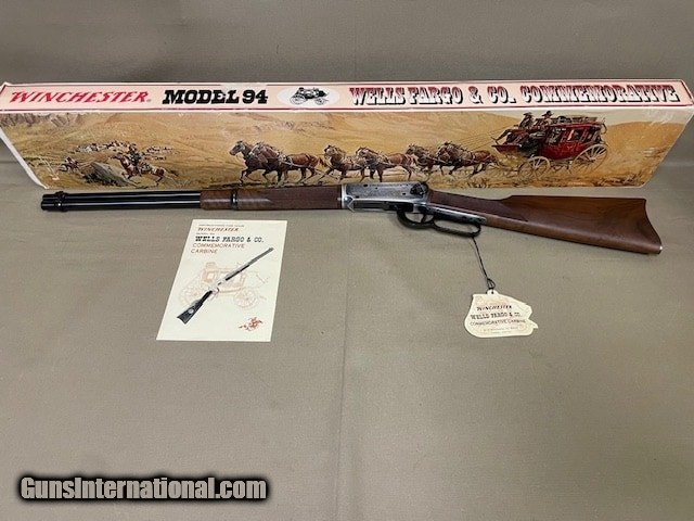 Description: Guns Listing ID: 1094085 WINCHESTER MODEL - 1894 WFC CALIBER - 30-30 NEW IN BOX!! WELLS FARGO COMMEMORATIVE 20\" BARREL 5 + 1 S/N WFC037XX SOLD Manufacturer: WINCHESTER Model: MODEL 1894 WELLS FARGO COMMEMORATIVE Caliber Info: .30-30 WIN Condition: Used - Non-Certified Barrels: 20 BARREL |