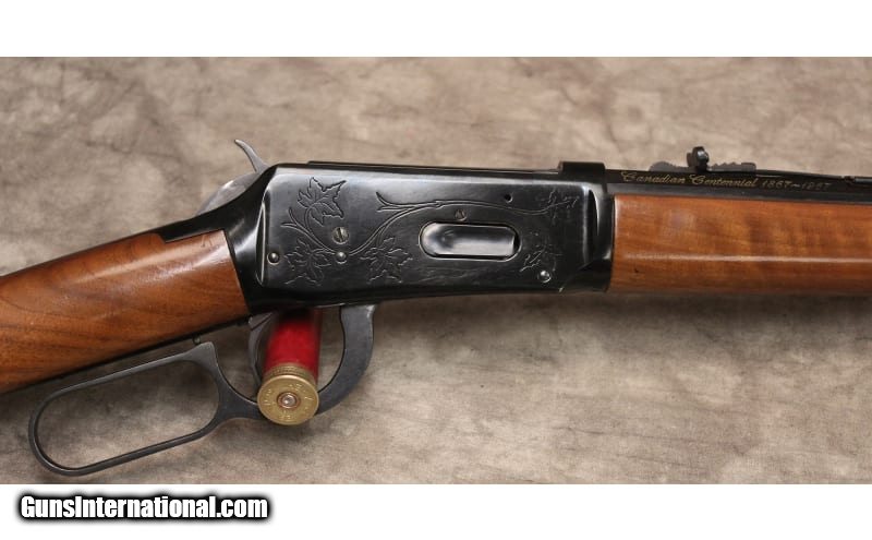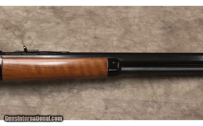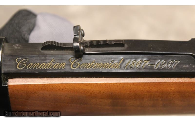 Description: This Winchester Model 94 is a commemorative "Canadian Centennial 1867-1967" model with maple lead motif engraved on the receiver and heavy octagon barrel, as well as a saddle ring. It shows some wear from storage and handling but is otherwise in very good overall condition. .30-30 Winchester SOLD Metal Condition: Very good Wood Condition: Very good Bore Condition: Very good Barrels: 20 Weight: 6lbs Item Location: Broken Arrow, OK |