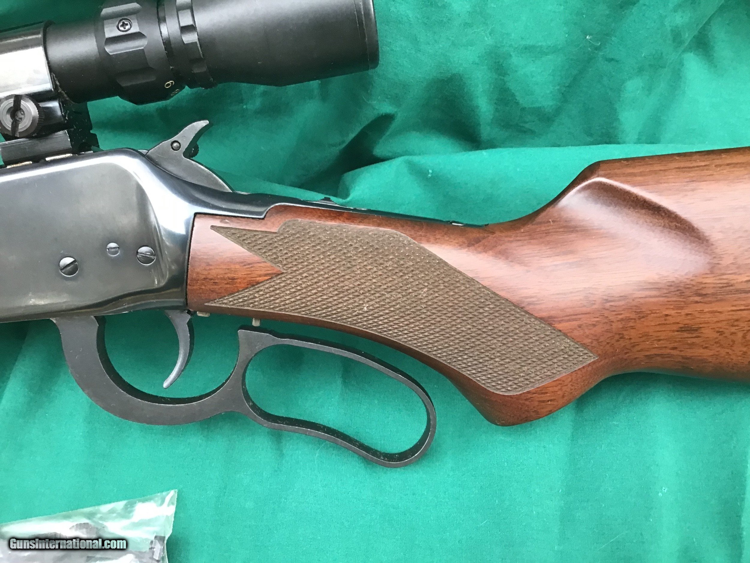 Description: Winchester Model 94AE .357 Magnum with Simmons 3-9x32 Scope. Pistol grip checkered forend and buttstock. Both pieces are in very nice condition with the minimum handling marks. Overall metal condition retains over 95% original blue. Comes with it's original rear sight and also has a hammer spur for ease of working the action with a scope. Overall a great hunting rifle in in very fine used condition. 24" barrel and full magazine, great bore. Must ship to a FFL license holder. Please feel free to ask questions. SOLD |