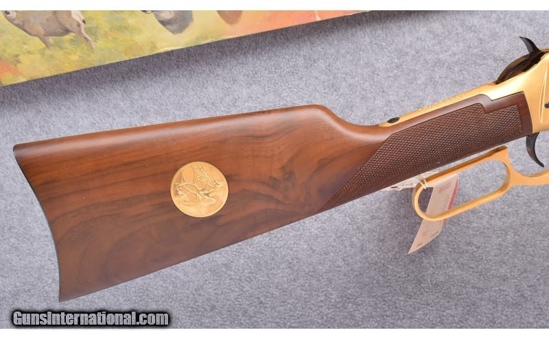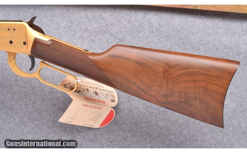 Description: Winchester Antlered Game Carbine c.1978, 20,000 rifles issued. Very clean carbine shows minimal handling, includes factory box. .30-30 Winchester SOLD Metal Condition: "Blued, Satin Gold Receiver with Scroll and Game Scene Wood Condition: Walnut Bore Condition: "Bright, Sharp Barrels: 20 Inch BBL Butt Pad: Blued Crescent Weight: 6 lbs 8 0z Sights: Open Sporting Sights Item Location: Buda, TX |