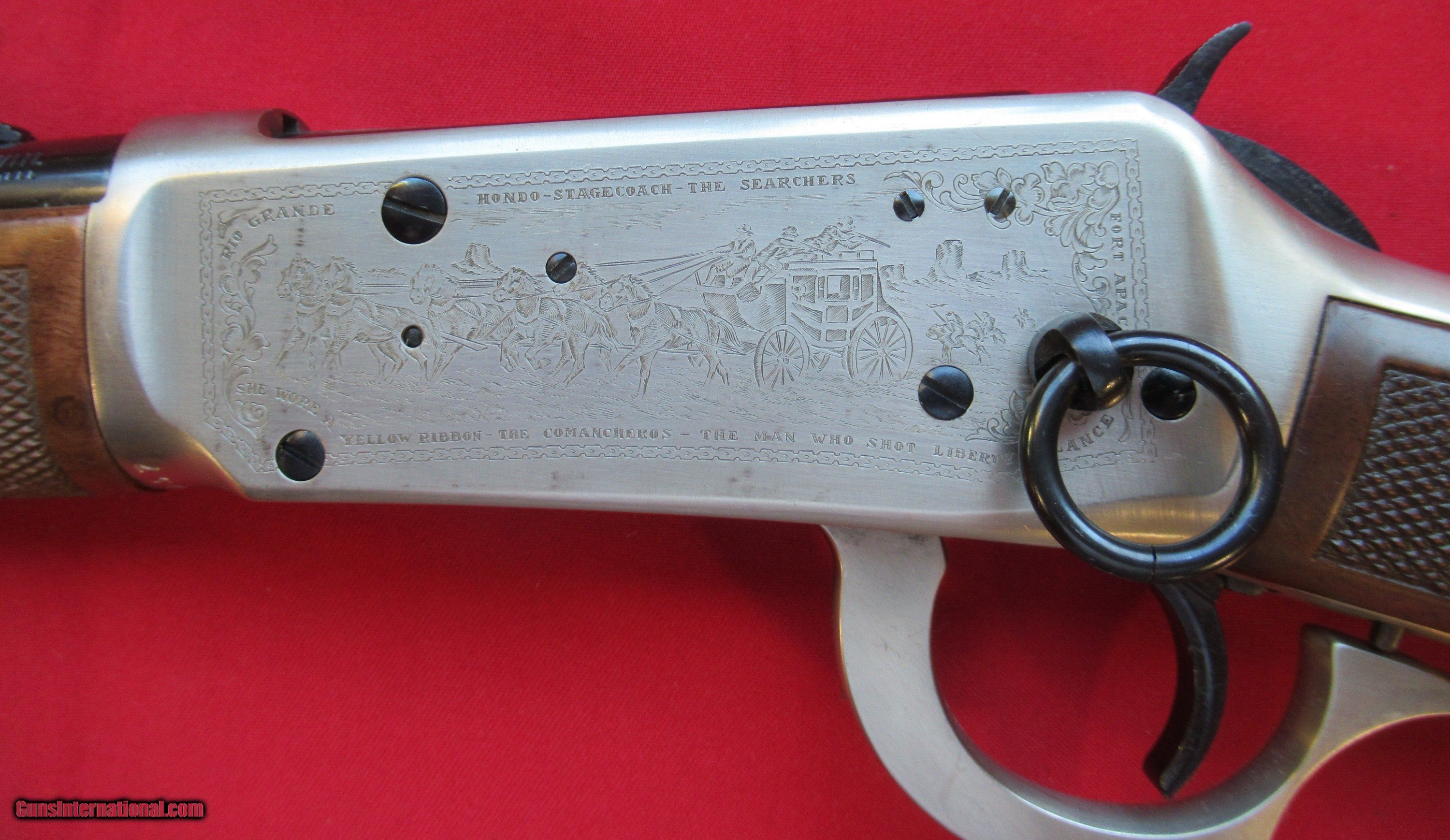 This Winchester Model 94 John Wayne 32-40 Saddle Ring Carbine Commemorative was made in 1981. It is in 100% Collector Quality Condition. Appears unfired. The high lustre blueing is 100% and the walnut stock is 100% condition as well. The sleeve has some tears that has been taped up as the pictures show. Original paperwork and leather string for the saddle ring comes with the carbine. Shipping is $85.00 to the lower 48 and must ship to FFL or Curio & Relic license holder. Don't miss this one. Thanks for looking. You won't be dissapointed.