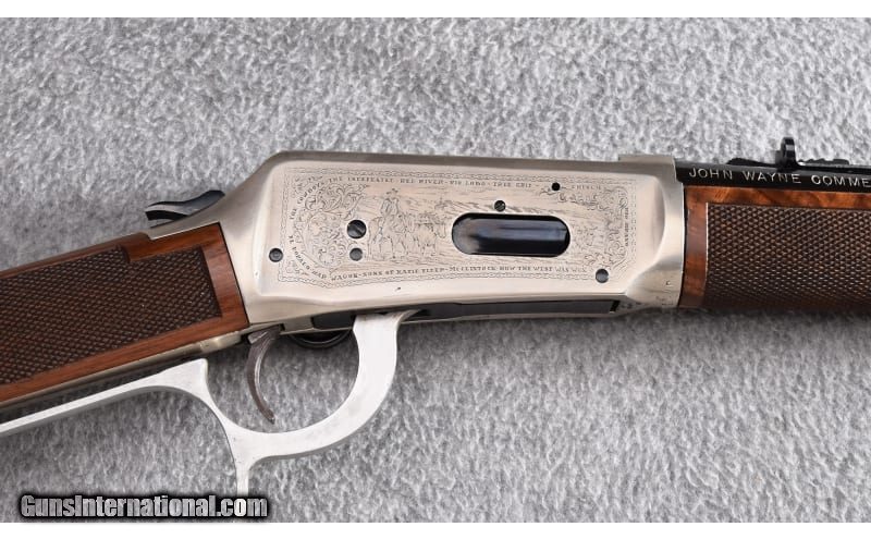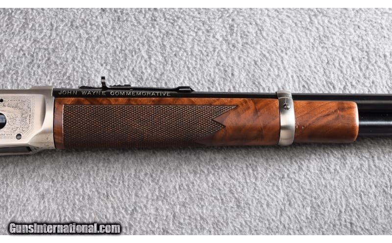 Description: This Winchester Model 94 in .32-40 is a John Wayne Commemorative edition. It features detailed engraving on the receiver sides. The bore is bright and shiny and the wood in this particular example is fantastic. There is a blemish on the metal finish on the bottom of the receiver near the serial number. Overall this gun is fantastic! It comes complete with the factory commemorative box and a leather scabbard. Very nice!!! .32-40 Winchester SOLD Metal Condition: Excellent Wood Condition: Excellent Bore Condition: Excellent Barrels: 18 Triggers: Factory Stock Dimensions: 13 1/4" LOP Fore End: Checkered Walnut Straight Stock - Checkered Walnut Forend Butt Pad: Black Metal Butt Plate Weight: 6 1/2 lbs Sights: Black Blade Front - U Notch Rear Item Location: Wheeling |