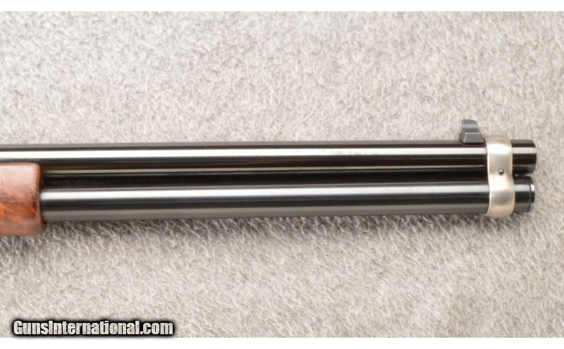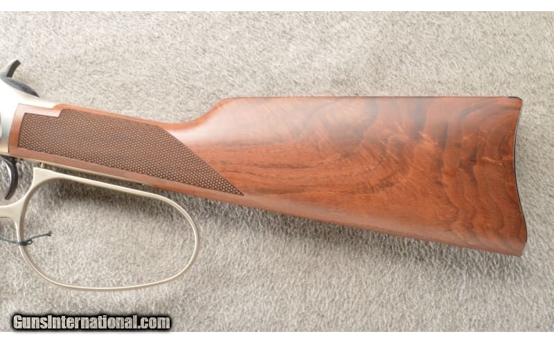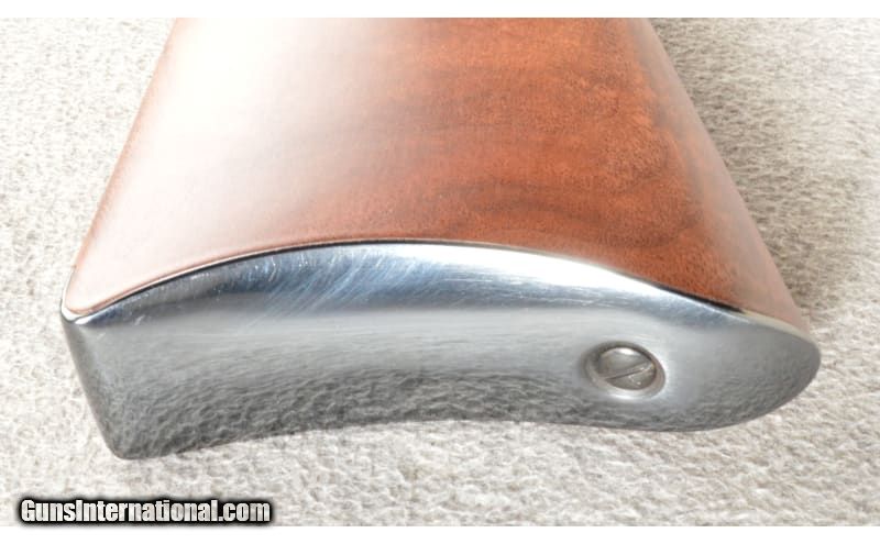 Description: This Winchester 94 Carbine is a John Wayne Commemorative chambered in 32-40 WCF from the early 80's. The action is a large loop lever action, tubular magazine fed rifle. The receiver is engraved pewter plated and pewter plated barrel bands. Markings on the left side of barrel are; "WINCHESTER MODEL 94 32-40 WIN. / MADE IN NEW HAVEN, CONN. U.S.A. WINCHESTER PROOF STEEL". The top of the barrel is marked with a "WP" proof, the right is marked "JOHN WAYNE COMMEMORATIVE". The underside of the receiver is marked with the serial number "JW 6849". The sides of the receiver are scroll engraved and with scenes from his films. The title of his western movie; The Man Who Shot Liberty Valance and True Grit are engraved along the border. John Wayne's signature is engraved on the upper tang. There is a medallion featuring Wayne with his name above inset into the right side of the buttstock. The front sight is a blade dovetailed to the barrel. The rear sight is an adjustable semi buckhorn "U" notch dovetailed to the rear of the barrel. The left side of the receiver is drilled, tapped in two places for a receiver sight. The stocks are two-piece checkered walnut, straight grip, straight comb and steel carbine-style buttplate. Comes with matching factory box, manual, and leather thong. This gun is in excellent condition and may have been shot a time or two. .32-40 Winchester SOLD Chambers: Lever action. Metal Condition: 99%. Wood Condition: 99%. Barrels: 18.5" barrel. Triggers: Single. Stock Dimensions: LOP 13.5". Fore End: Checkered. Butt Pad: Metal. Weight: 6.25 lbs Item Location: Owatonna, MN |