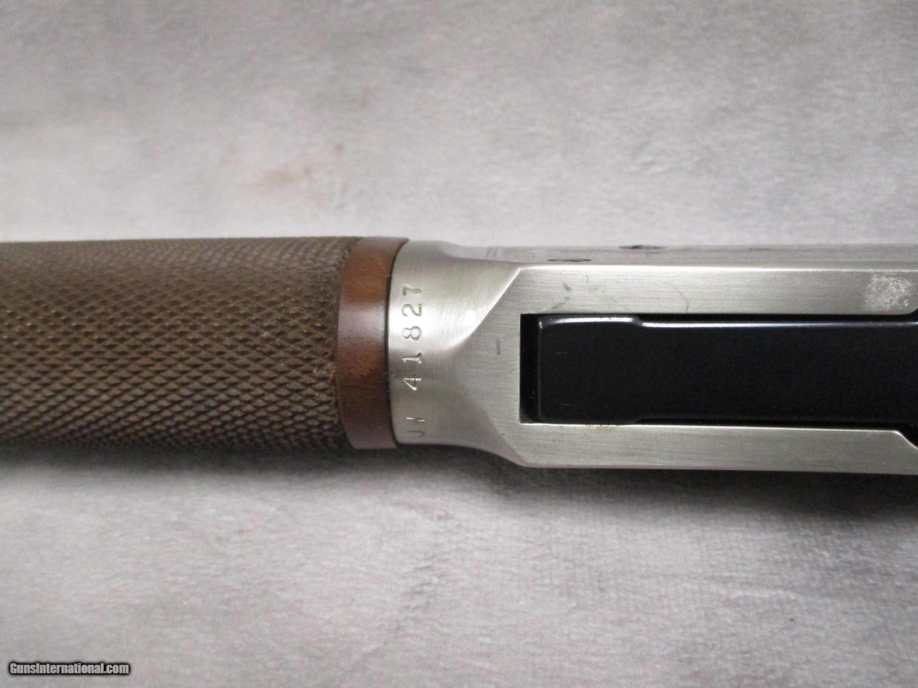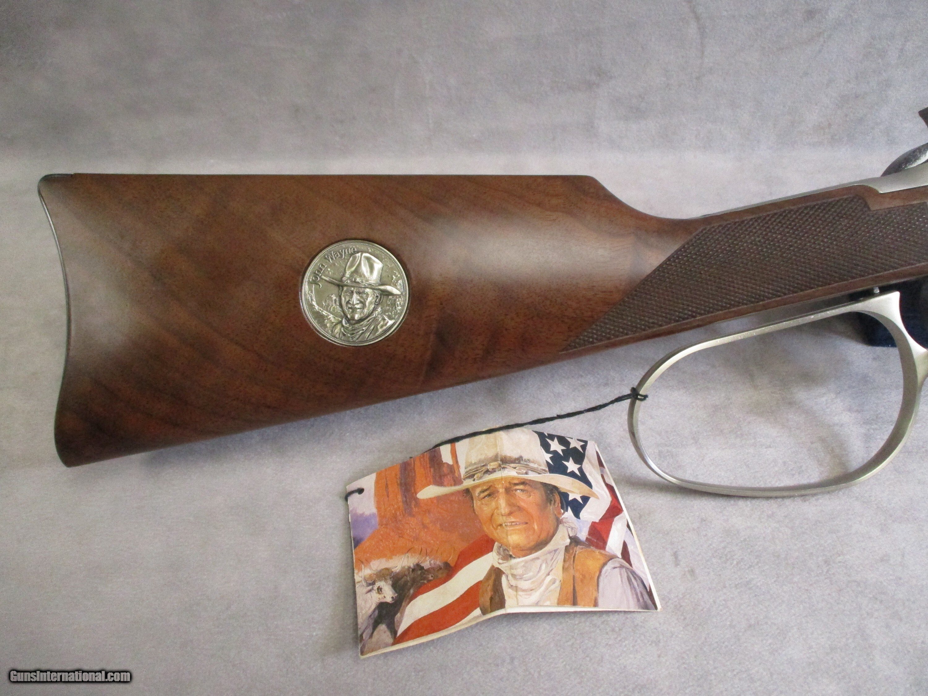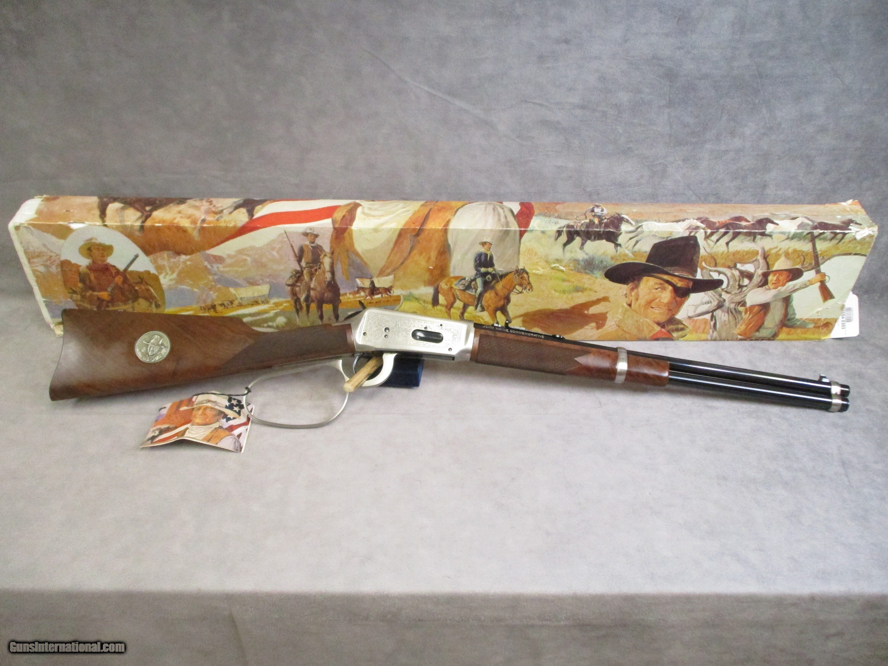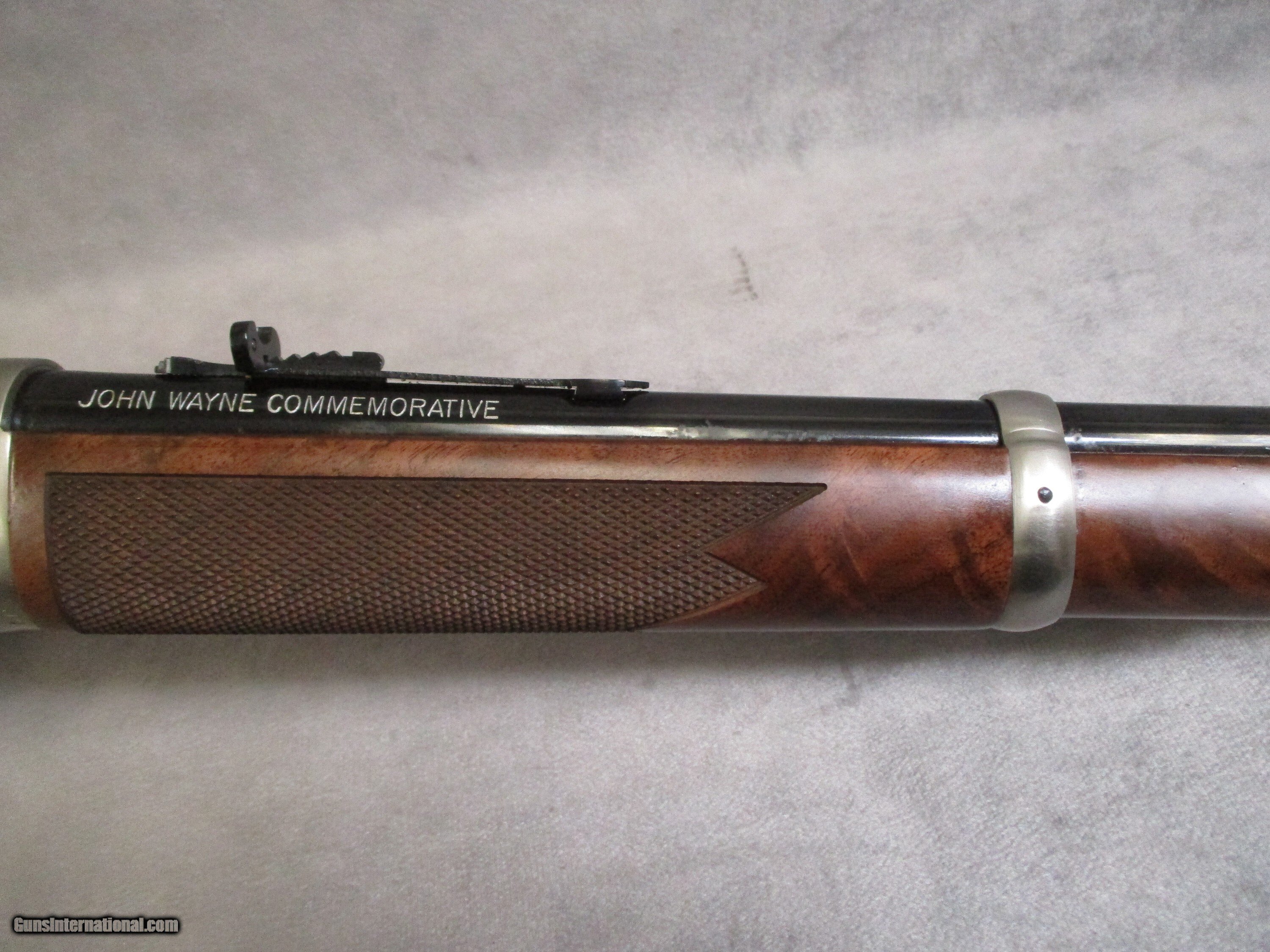 The Model 1894, later shortened to Model 94, is one of the most widely used rifles in history. The Winchester 94 can be considered “The Deer Hunting rifle”, as it, along with the .30-30 cartridge, has arguably been used to take more deer than any other rifle/cartridge combination in history. This 94, however, is not a hunting rifle. It is a post-64 commemorative model intended to honor one of the most prolific American actors who ever lived: John Wayne aka “The Duke”. Starting out as a prop boy and extra, one of his first important jobs was serving as the “gopher” or assistant to the real-life lawman Wyatt Earp while he was serving as a film consultant. Wayne later credited his walk, talk, and persona to his acquaintance with Earp. Eventually, Wayne moved onto bit parts, being credited on screen as “Duke Morrison” only once, in the film Words of Music (1929). Interestingly, a year later, while working as prop boy on the set of a film, director Raoul Walsh noticed him and decided to cast him in his first starring role for the film The Big Trail (1930). Sadly, that film was a flop at the time due to the use of a new widescreen filming process, for which few theaters in the U.S. were equipped to show it (especially at the beginning of the Depression). Wayne was then relegated to small roles in A-grade films. At the time, he also played the lead roles in many low-budget Westerns, then known in the industry as Poverty Row Westerns. During these productions, Wayne worked with famed stuntman Yakima Canutt to develop and perfect stunts and on-screen fisticuffs techniques that are still in use in film today. Wayne’s second breakthrough role came with famous director John Ford’s Stagecoach in 1939. The film was a huge critical and financial success and Wayne finally became a mainstream, A-list star. Wayne eventually starred in over 142 motion pictures. He is best known for his roles in Western films and secondly for his starring roles in several World War 2-themed films as well. Of course, there were a miscellanea of other high-profile films he starred in which generally fit the drama or adventure categories. He was not a one-note actor as he is sometimes referred to as. Overall, unlike the “clean fight” western heroes of the silent era of films, John Wayne, and the Western characters he played, became iconic examples of the Old Western badass heroes who were willing to get their hands a little dirty to defeat the bad guys. Sadly, John Wayne passed away from stomach cancer in 1979.