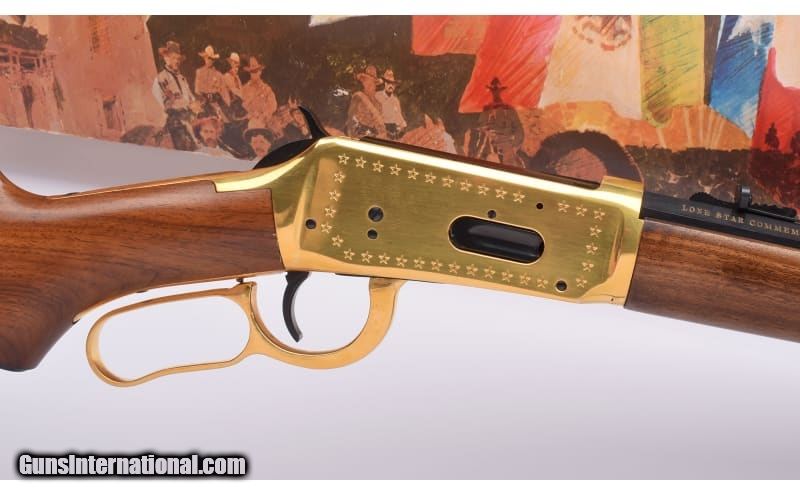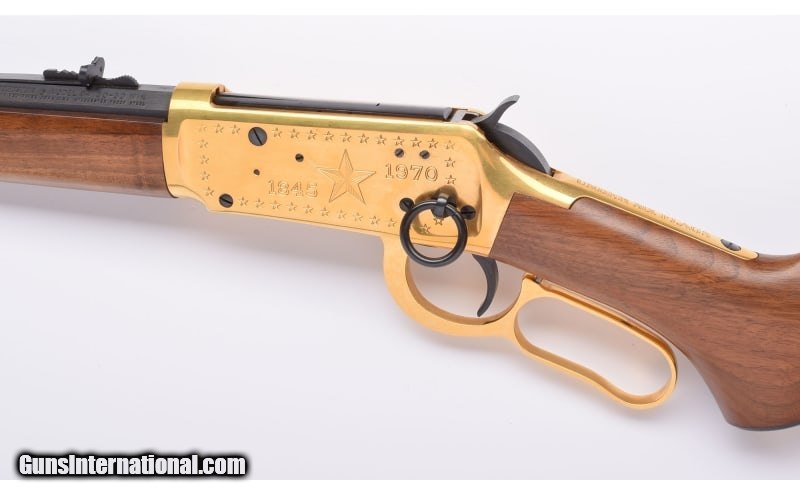 Description: Winchester Model 94 Lone Star Commemorative, c.1970. Very clean carbine shows minimal handling and includes proper factory box. .30-30 Winchester SOLD Metal Condition: "Blued, Gold Plating Wood Condition: Walnut Bore Condition: Bright Sharp Barrels: 20 Inch Half Round /Half Octagon Butt Pad: Crescent Weight: 6 lbs 14 oz Sights: "Open, Sporting Sights Item Location: Buda, TX |