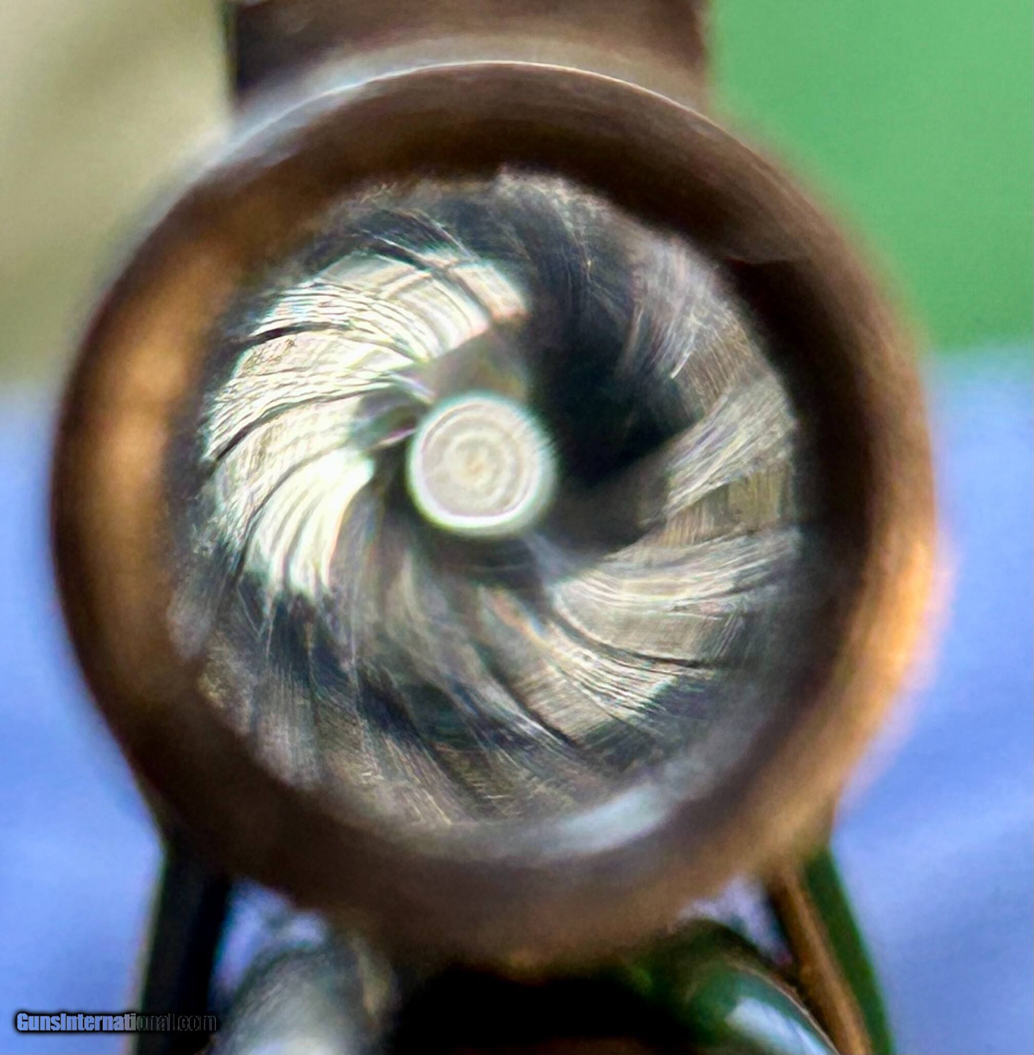 The rifle's stock is in very good condition with minor handling marks.Walnut buttstock shows very nice figure. We find no cracks, chips, or gouges. The bluing on the rifle is in very good condition. The right side of the receiver has typical handling marks from use. The left side of the receiver has numerous nicks, most likely from some sort of gun rack. However, none of these nicks show any signs of corrosion. We've made no effort to mask these and will leave them as such. Please see pictures for details.