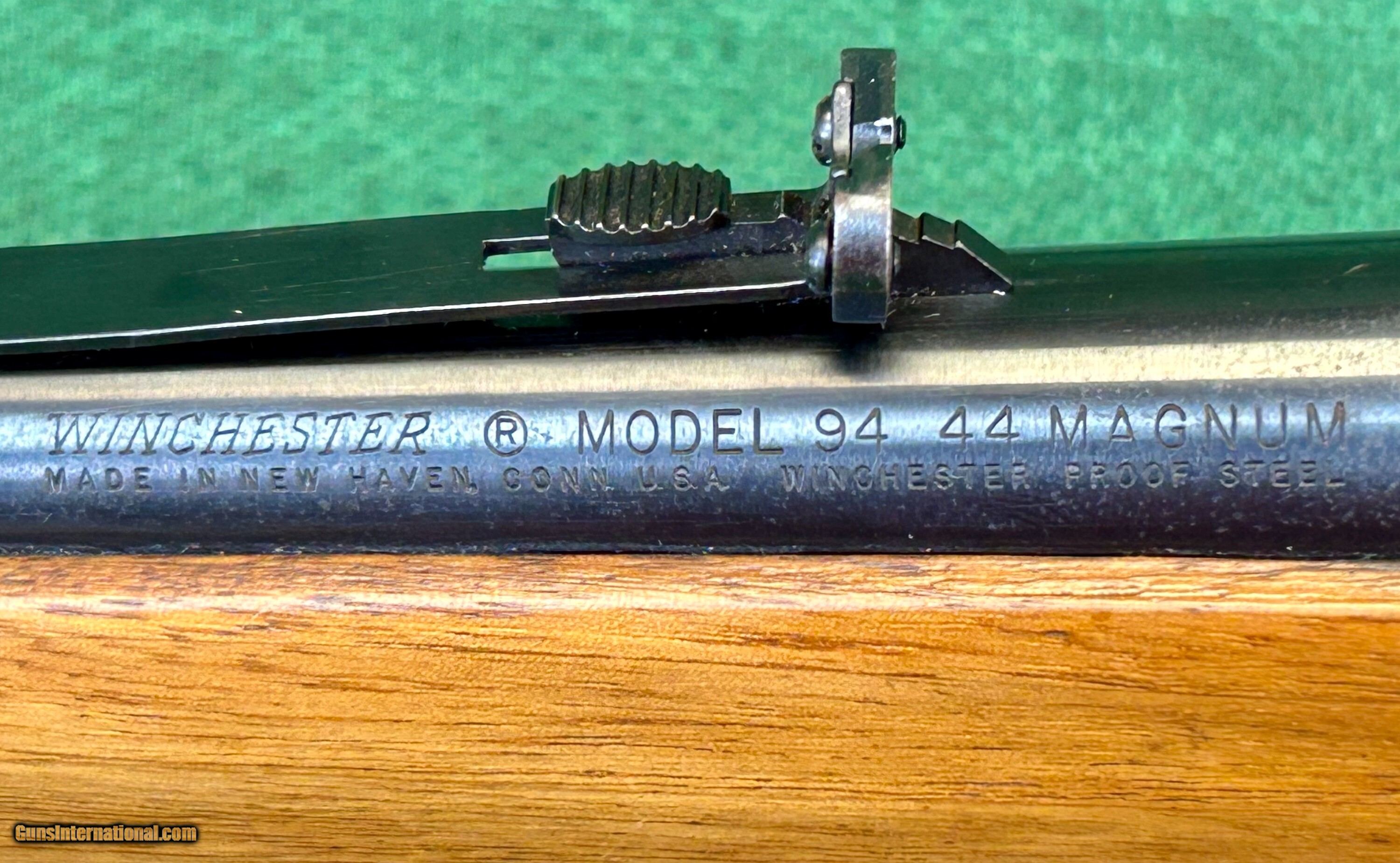 Our research shows that this Model 94 SRC Carbine was manufactured in 1971. This rifle is chambered in .44 Magnum and features a 20" barrel. The rifle's bore is clean, and the rifling is crisp. This model does not have a crossbolt safety.
