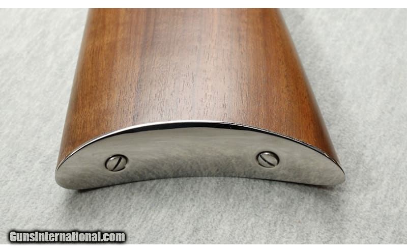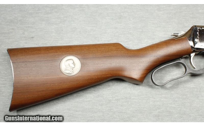 Description: Appears as new, with original box. Winchester 94 President Roosevelt 1901-1909 Commemorative .30-30 lever action rifle, 20" octagon barrel with full length mag tube, blued metal with silver receiver, smooth action, and iron sights. Natural finish premium smooth hardwood forend and stock with Winchester curved metal butt plate. .30-30 Winchester SOLD Chambers: Lever action Metal Condition: As new Wood Condition: As new Bore Condition: Bright Barrels: 20 Triggers: Factory Stock Dimensions: 13" LOP Fore End: Smooth Butt Pad: Curved metal butt plate Sights: "Buckhorn rear, bead front sights Item Location: La Vista, NE |