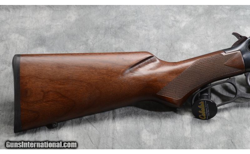 Description: A thumper for things that need "thumpin' SOLD Caliber Info: .444 Marlin Metal Condition: Excellent Wood Condition: Excellent Bore Condition: Bright and shiny Barrels: 18 Inch Stock: Checkered walnut pistol grip stock. Stock Dimensions: 13 - 5/8 Inch LOP Fore End: Matching checkered walnut Butt Pad: Rubber pad Weight: 6 lb. - 4 oz. Sights: Hooded bead and folding leaf open sights. Drilled and tapped for your choice in scopes. Item Location: Rogers,, MN |