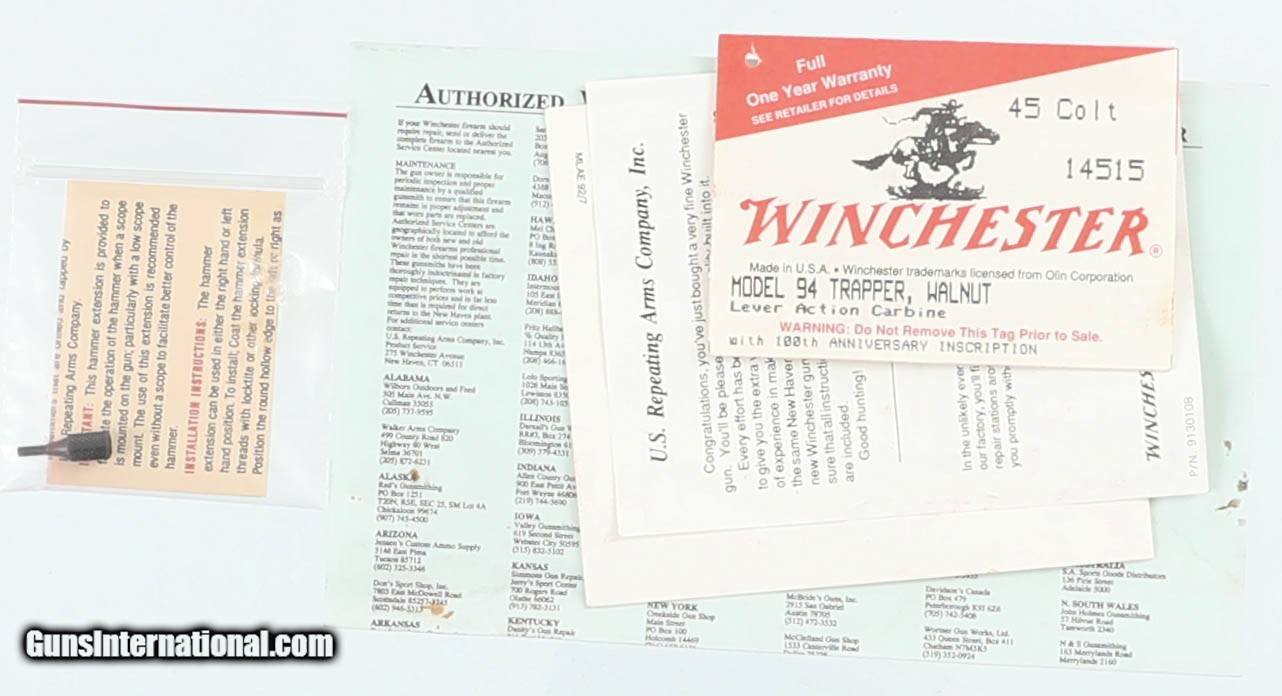 SOLD Rifle Caliber: .45 Colt Manufacturer: WINCHESTER Model: 94AE Serial Number: 61575?? Barrel Length: 16 Condition: EXCELLENT |