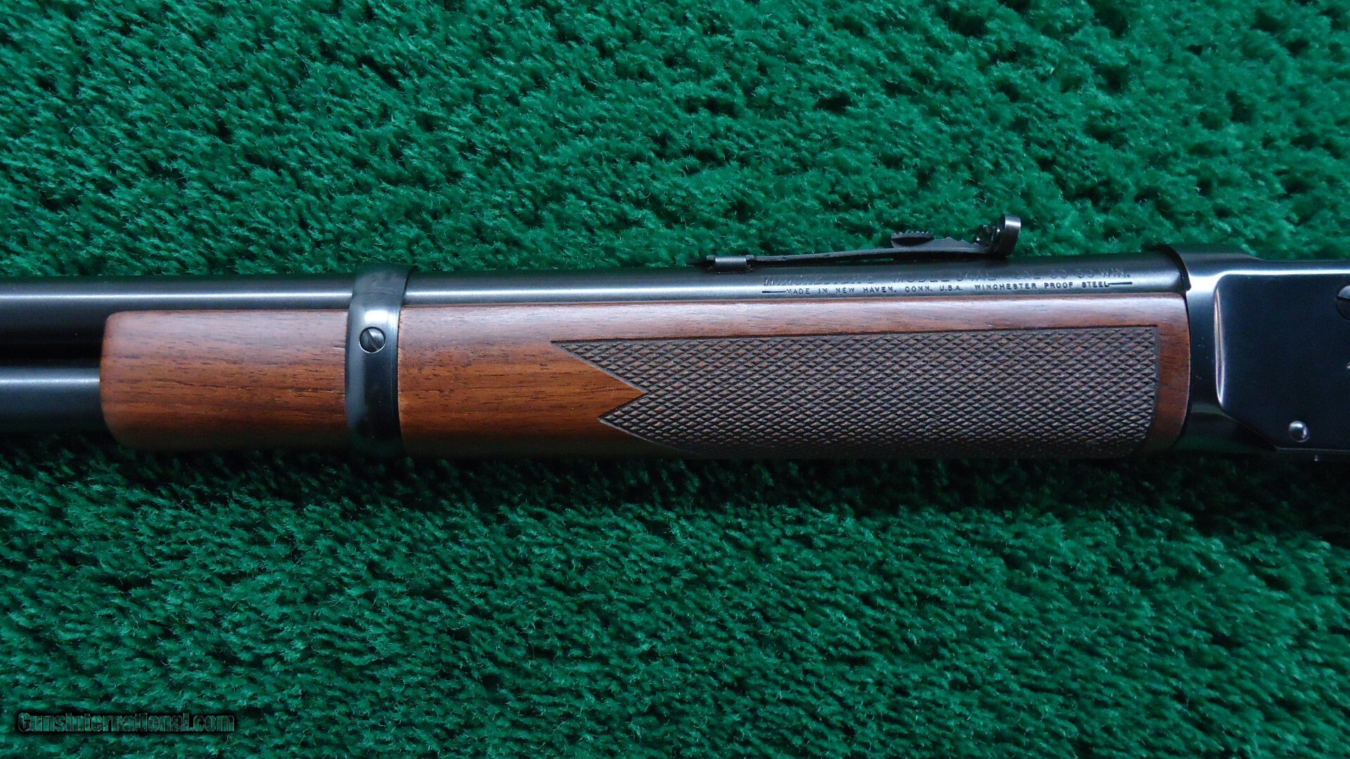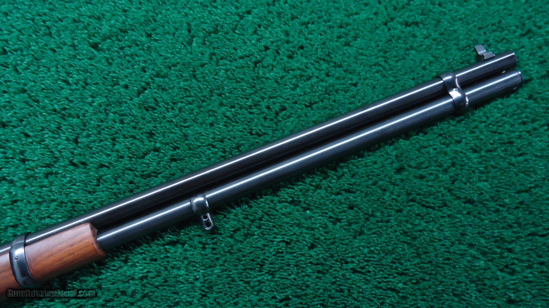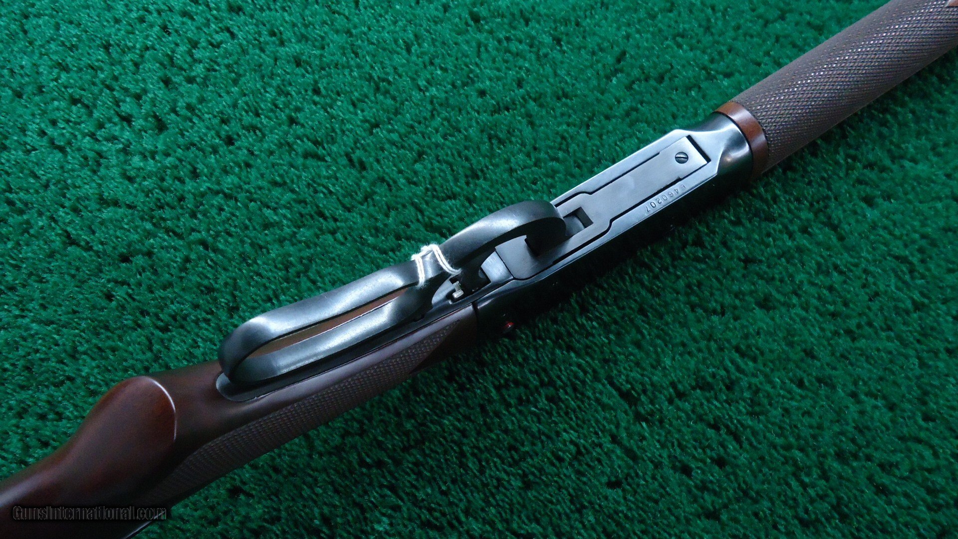 24 inch round barrel. Full length magazine tube. Two barrel bands. A dovetailed front sight and a semi-buckhorn sporting rear. Blue finished receiver with Crossbolt Safety. Checkered walnut forearm with matching pistol grip buttstock fitted with a Winchester black plastic buttplate and Sling Eyes. Near as new condition showing little to no use. Rates 98% plus, Excellent overall with only very light handling marks. The bore is excellent, bright and shiny with strong rifling. The action is crisp and tight.