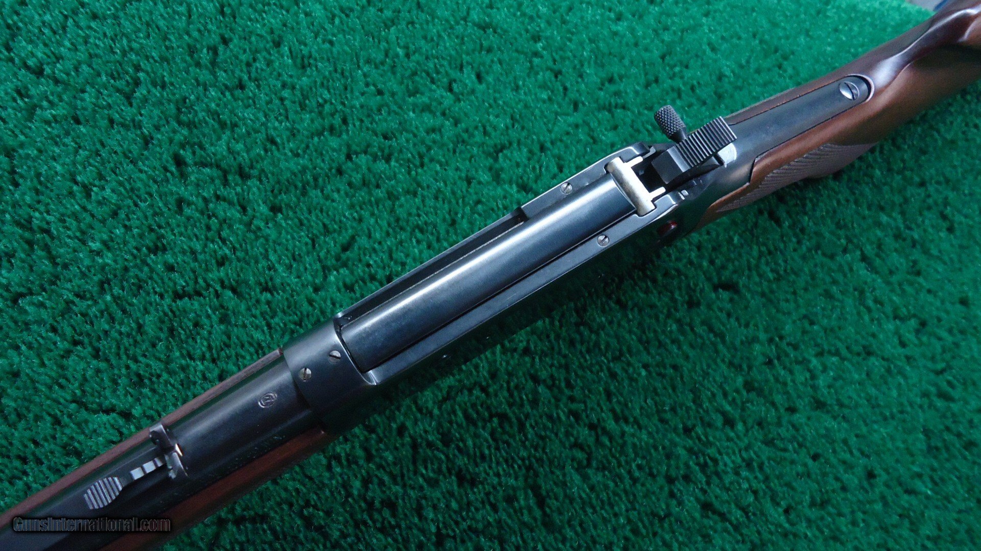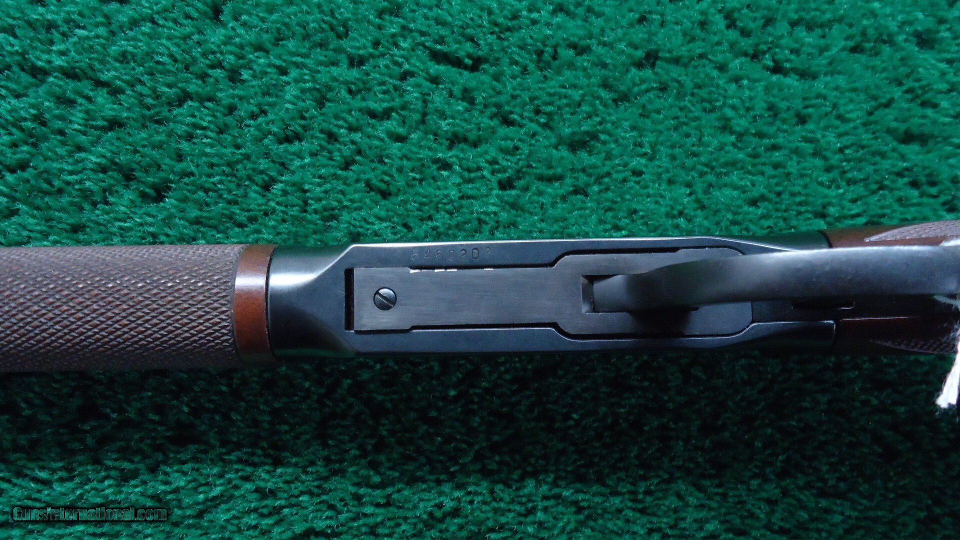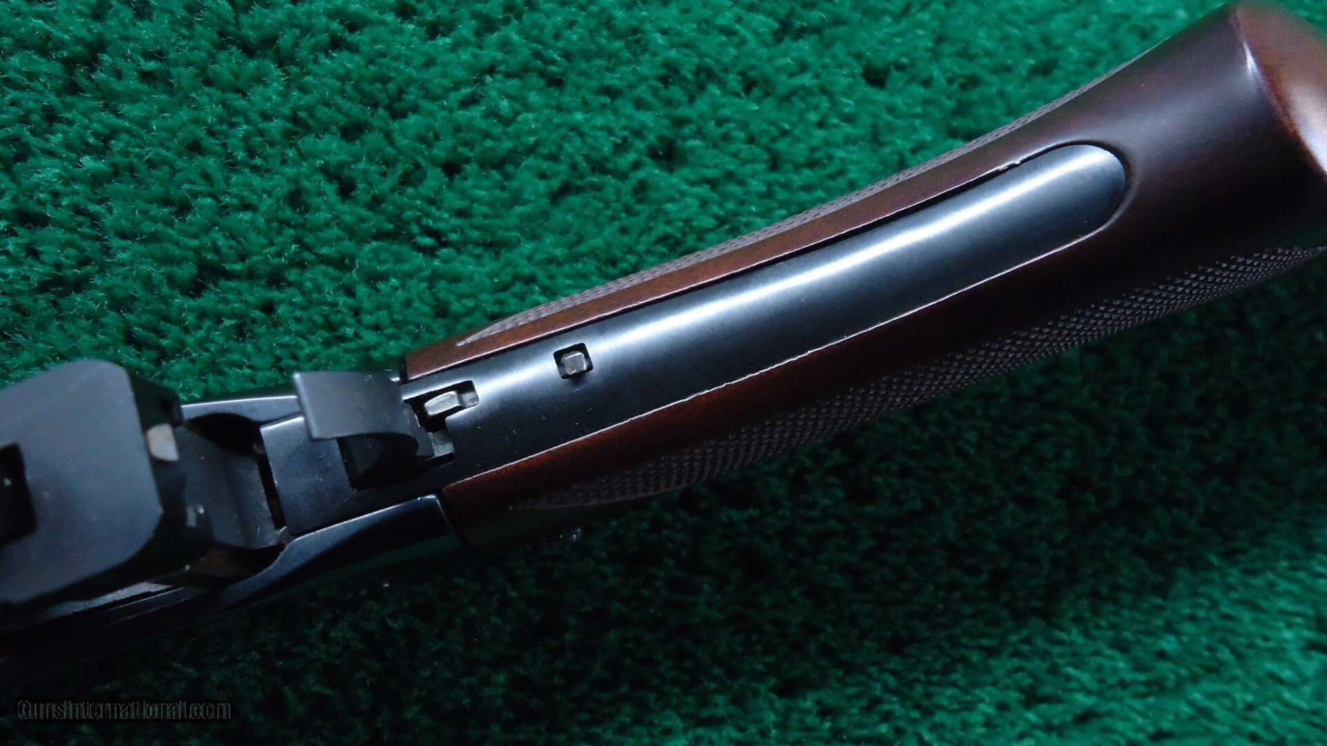 24 inch round barrel. Full length magazine tube. Two barrel bands. A dovetailed front sight and a semi-buckhorn sporting rear. Blue finished receiver with Crossbolt Safety. Checkered walnut forearm with matching pistol grip buttstock fitted with a Winchester black plastic buttplate and Sling Eyes. Near as new condition showing little to no use. Rates 98% plus, Excellent overall with only very light handling marks. The bore is excellent, bright and shiny with strong rifling. The action is crisp and tight.