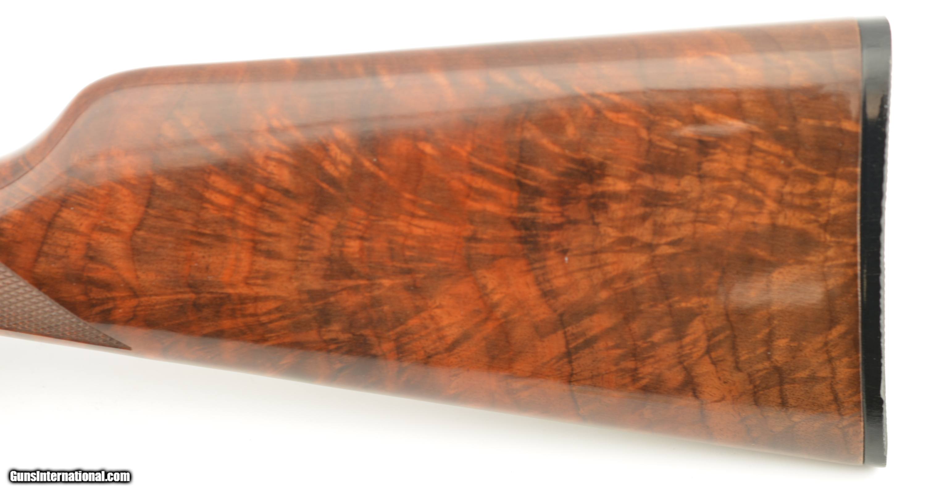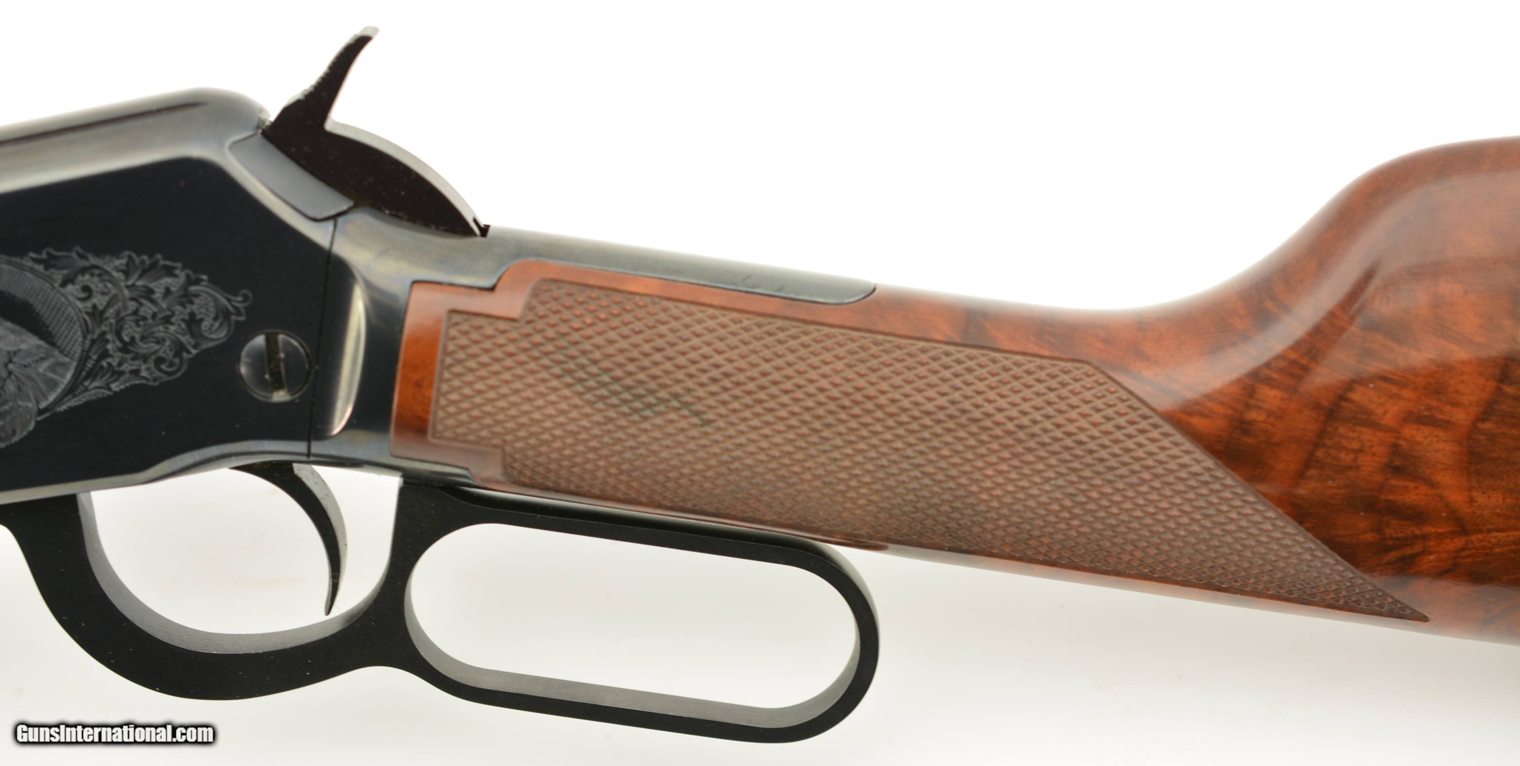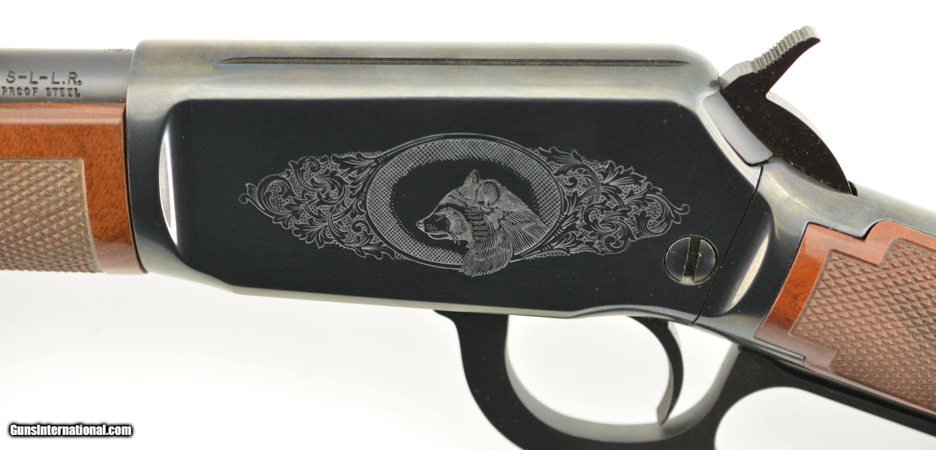 Description: Serial #F676480, .22 S,L,LR, 20 ½ inch barrel with a bright, excellent bore. This is the High-Grade Winchester Model 9422 manufactured from 1995-96 only featuring an engraved receiver with raccoon on the left side of the receiver and coonhound on the right with checkered deluxe, full figured feathered crotch walnut stock and forearm. The lever action rifle is in excellent plus condition retaining virtually all, 98-99% of the original blue finish on the metal surfaces with only faint handling marks. The high gloss finished stock and forearm are likewise excellent with some tiny storage and handling blemishes. A beautiful engraved 9422 High-Grade that remains in very high condition. FFL SOLD Manufacturer: Winchester Model: 9422 Serial Number: F676480 Caliber Info: .22 LR Gauge Info: .22 LR |