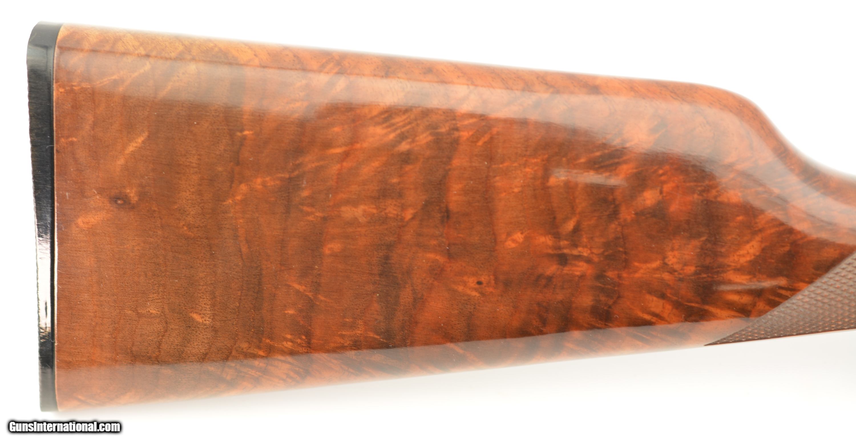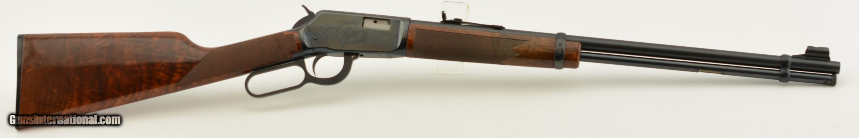 Description: Serial #F676480, .22 S,L,LR, 20 ½ inch barrel with a bright, excellent bore. This is the High-Grade Winchester Model 9422 manufactured from 1995-96 only featuring an engraved receiver with raccoon on the left side of the receiver and coonhound on the right with checkered deluxe, full figured feathered crotch walnut stock and forearm. The lever action rifle is in excellent plus condition retaining virtually all, 98-99% of the original blue finish on the metal surfaces with only faint handling marks. The high gloss finished stock and forearm are likewise excellent with some tiny storage and handling blemishes. A beautiful engraved 9422 High-Grade that remains in very high condition. FFL SOLD Manufacturer: Winchester Model: 9422 Serial Number: F676480 Caliber Info: .22 LR Gauge Info: .22 LR |