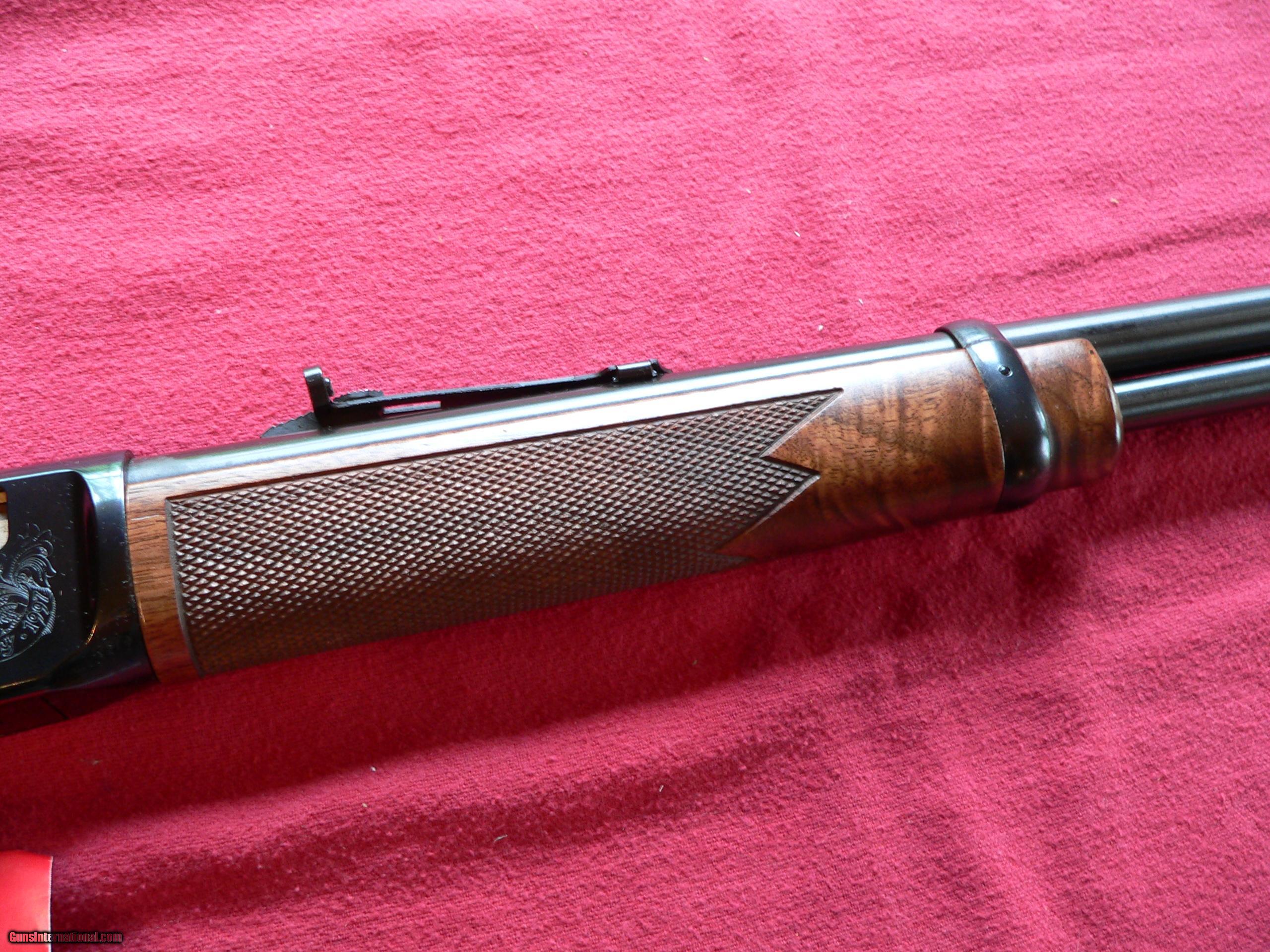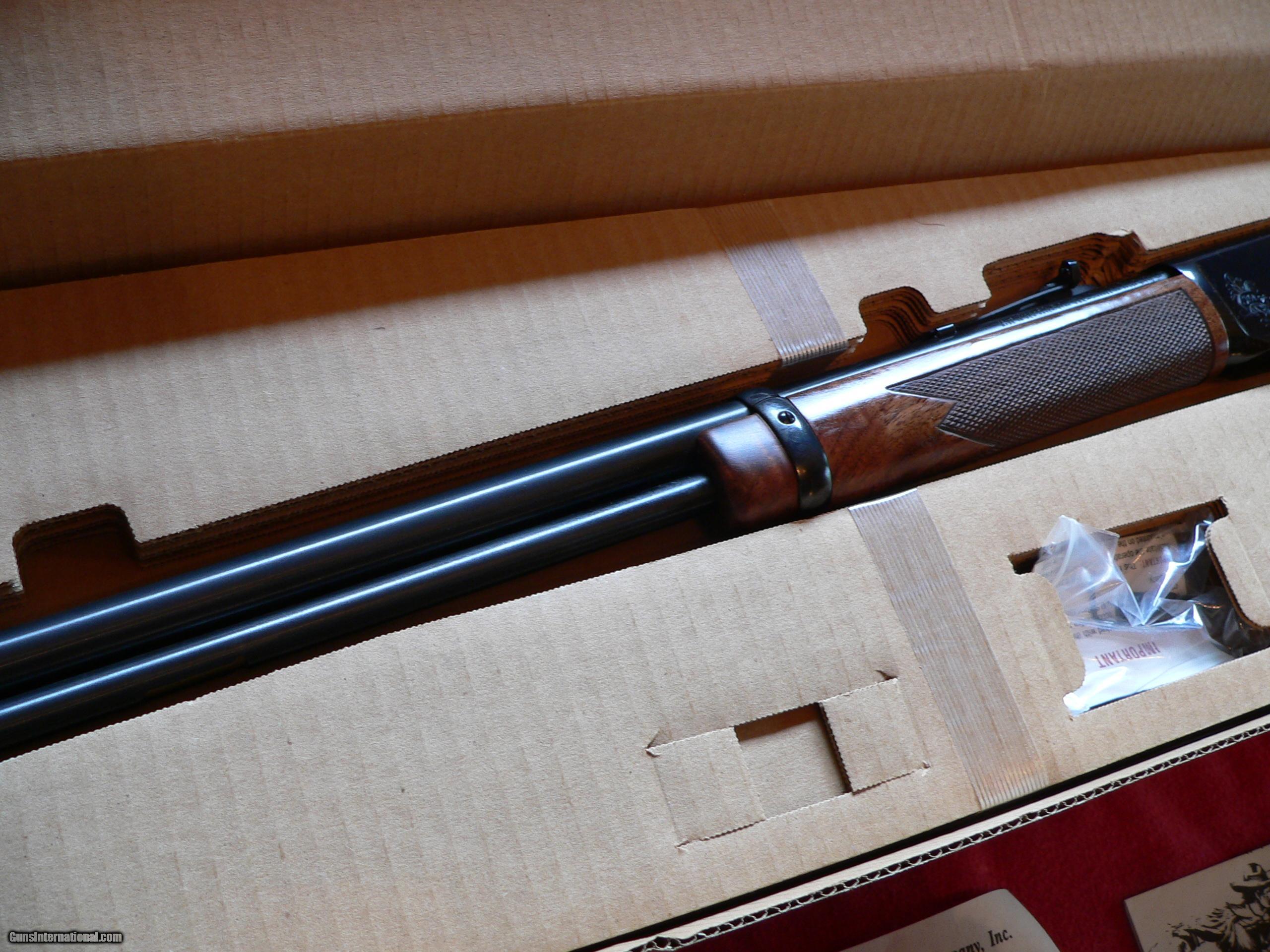 Description: REDUCED NIB Winchester Model 9422 25th Anniversary Grade I, cal. 22LR Lever-action Rifle. Barrel Length: 20?1/2”; LOP: 14”. Metal condition: NIB, Stock condition NIB, Bore condition: New; OVERALL RATING OF GUN: NIB. This rifle has very nice intricately-figured wood. Factory box and all papers included. S/N: 23229XX. SOLD |