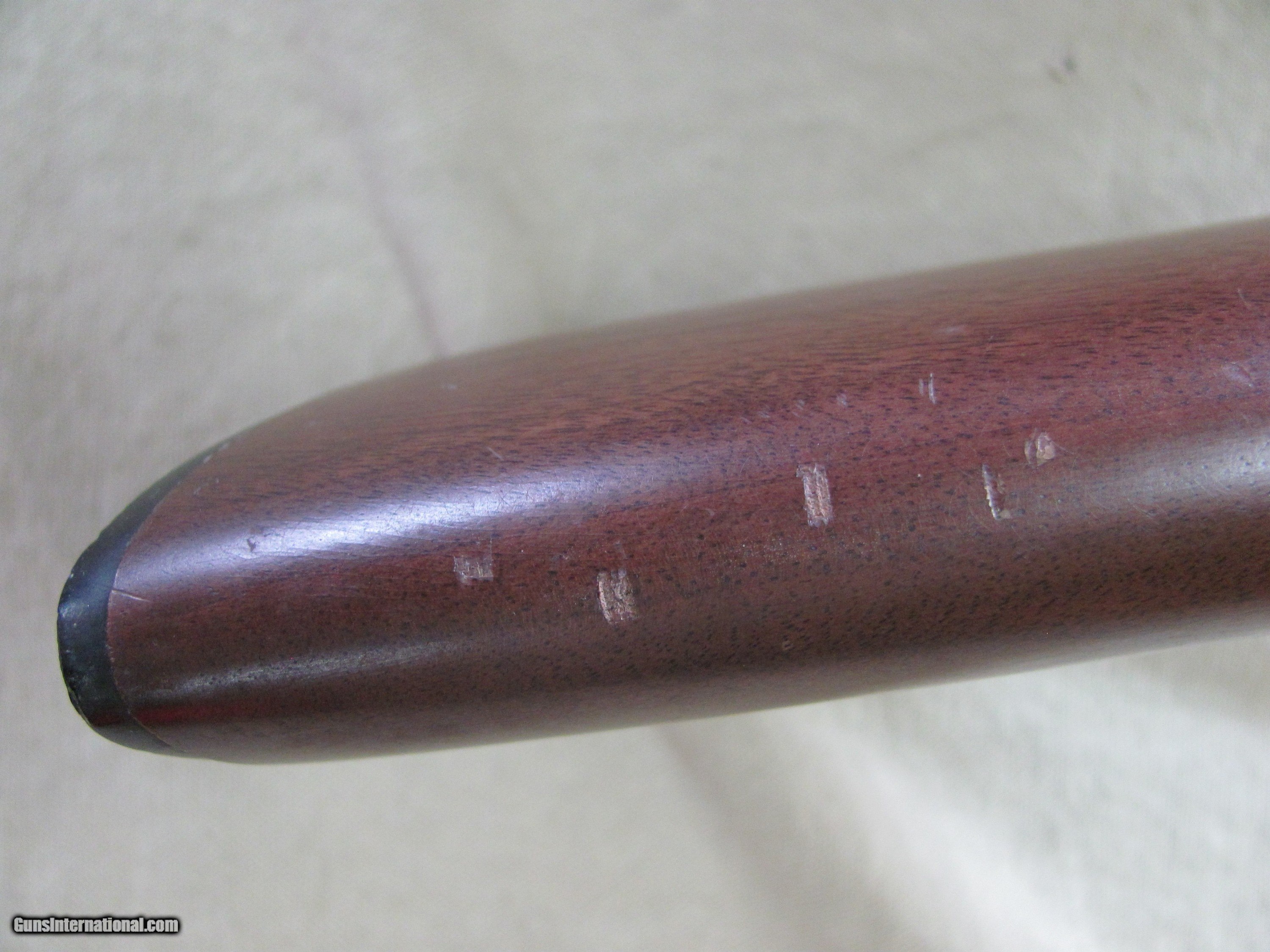 Description: THIS IS A BEAUTIFUL WINCHESTER 22 MAGNUM MODEL 9422M LEVER ACTION CARBINE MADE IN 1975 WITH ERA CORRECT WEAVER SCOPE THE BLUE METAL FINISH WOULD RATE AN OVER ALL 99% WE WOULD LIKE TO POINT OUT THAT THE OLD FELLOW THAT OWNED THIS GUN LIGHTLY ENGRAVED HIS DRIVERS LICENSE NUMBER ON THE UNDER SIDE HIDDEN BY THE LEVER ON THE LOWER END OF THE RECEIVER UNDER THE LEVER (SHOWN) THE ERA CORRECT WEAVER SCOPE IS CLEAR AND FUNCTIONAL THE BORE OF THE 20” BARREL HAS 99% RIFLINGS AND IS BRIGHT, SHINY AND EXCELLENT THE WORST OF THE WOOD STOCK & FOREND IS THE RACK-PECKING ON THE LOW SIDE OF THE BUTT NEAR THE BUTT PLATE (SHOWN) BECAUSE OF THE FAST PACE AND VOLATILITY OF THE GUN MARKET WE WILL GIVE NO INSPECTION PERIOD. IF YOU WANT MORE INFO OR MORE PHOTOS ASK “BEFORE” YOU BUY. SHIPPED AS SHOWN WITH NOTHING ELSE A CURIO OR STANDARD FFL WITH WORK BUT UNDERSTAND THAT WE WILL PUT A SIGNATURE ON THE PACKAGE SO IT WONT GET LEFT ON A PORCH AND IF THAT IS UNACCEPTABLE THEN I’M SORRY BUT PLEASE DON’T BUY BUYER PAYS A FIXED AMOUNT OF 35.00 INSURED SHIPPING TO THE LOWER MAINLAND STATES. SHIPPING TO ALASKA, HAWAII OR PUERTO RICO WOULD BE 78.00 WE WILL ONLY SHIP THIS GUN TO WHERE LEGAL NO SHIPMENTS OUTSIDE THE USA. MISSOURI RESIDENTS DO PAY A 8.575% SALES TAX. NO EXTRA CHARGE FOR CREDIT CARDS. BRANDON'S GUN TRADING CO LLC 321 EAST 20TH ST JOPLIN MO. 64804 (417)-623-8787 FAX (417)-623-2326 9-5 TUESDAY-SATURDAY CENTRAL TIME WE ARE ALSO CLOSED THE 1'ST SATURDAY OF EVERY MONTH AND HOLIDAYS. INVENTORY REFERENCE : CONSIGNMENT PLEASE NOTE, UPS SERVICE HAS GOTTEN SO BAD UNDER CURRENT MANAGEMENT THAT WE WON’T SHIP UPS UNLESS WE ABSOLUTELY HAVE TOO. WHEN WE DOUBLE PACK, INSURE, ADD SIGNATURE, USE GOOD BOXES AND UPS EVEN NOTES THEY DAMAGED THE ITEM AND THEY STILL WONT PAY. ALSO, ANY INSURANCE WE DO PUT ON OUR PACKAGES IS VOID IF YOU OR YOUR DEALER THROWS AWAY THE BOX, ANY PACKING MATERIALS OR FAILS TO PICTURE AND NOTIFY US AND THE SHIPPING COMPANY IMMEDIATELY SOLD Rifle Caliber: .22 WMR (.22 Magnum) Manufacturer: WINCHESTER Model: 9422M |