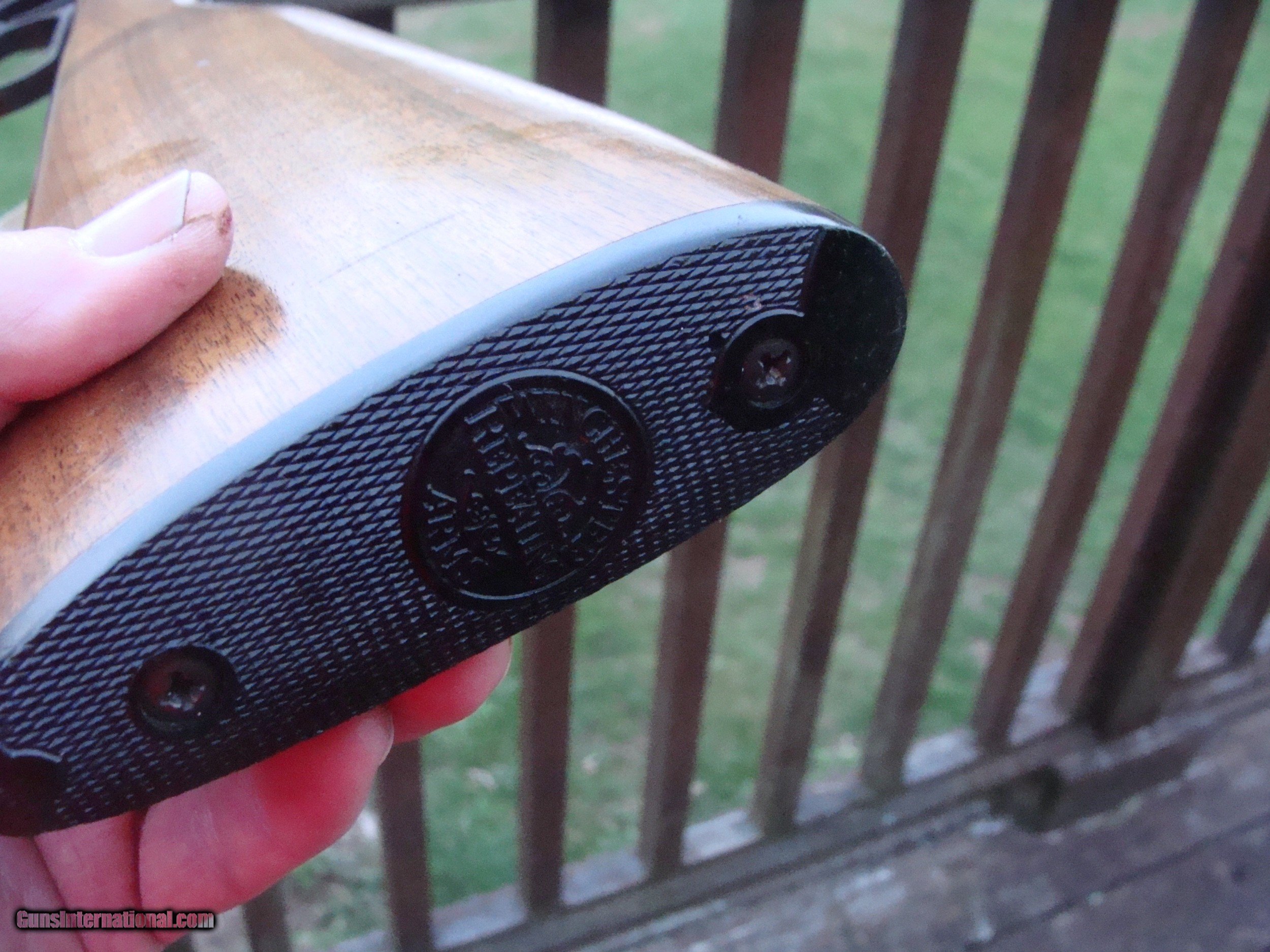 Description: Considered by some to have been among the highest quality 22s (and 22 mags and 17's) every produced; see the reprint below at the end of this description. This gun is in very good but not quite excellent condition. The blue and stock finish are at 90% overall. There is no rust or pitting. On the top of the receiver there are a couple of dings which will largely be hidden when a scope is installed (groooved 22 style scope mounting) with some very light scratche on the deeply polished blued receiver. A previous repair was done to the stock on the right side around the tang and where the metal meets the wood; a good repair if not quite perfect. Because of these imperfections we are offering this gun at a price never found in a 94/22 Mag. SEE THE REPRINT BELOW " In designing the action for the new rifle, the engineers turned for inspiration to a reliable and honored Winchester of the past, the Model 61 pump-action .22. Although that rifle was abandoned in 1964 as too expensive to manufacture by the old methods, Winchester’s new CNC equipment could make a similar action economically feasible. The Model 61 cartridge feed mechanism was distinguished by the fact that the cartridges were under total control from the instant they departed the under-barrel tube magazine. They were held by their rims throughout the feeding process, helping to provide excellent reliability. That action was modified so that it was actuated not by pump rails, but by a traditional under-lever. The rear of the bolt was cammed up solidly into the locking recess in the frame, and there was a concealed polymer buffer above the breech to give the action a very solid feel. The two-piece firing pin could function only when the action was completely closed and locked. From the start, the action was designed to work with the .22 Winchester Magnum rimfire cartridge, and it was easy to scale it down slightly to work with the .22 long rifle round as well. It was the only lever-action .22 available that could accommodate the magnum round. The .22 LR versions could handle .22 LR, .22 Long and .22 Short cartridges interchangeably. The Model 9422 used only a traditional half-cock safety, making it appeal all the more to traditionalists. Winchester spared no expense in making the rifle as perfect as possible. The best materials were used; a milled forged steel frame and internal parts and a walnut stock were standard. The rifle was attractive, reliable, and accurate. Careful bluing and fitting were employed. Although traditional open sights were utilized, the receiver was grooved for scope mounting if desired. Following the Model 61 precedent, the rifle could be taken down into two major assemblies plus the bolt, allowing cleaning from the breech to protect the muzzle from damage. All in all, the new gun could easily be termed a masterpiece. From the very start, Winchester found the demand for the new rifles exceeded their capacity to produce them. One of their early ads proclaimed: “We completely underestimated the demand…Read why they’re worth waiting for.” A later ad said: “With most rimfire rifles selling for less money why are shooters standing in line to buy the Winchester 9422?” And then the ad answered its own question by touting “Forged steel. Solid walnut. Classic styling. Modern design.” The 9422 was definitely a premium rifle, and customers were willing to pay the extra bucks. Winchester quality was back with this rifle, and in a big way." WE HAVE WELL OVER 1500 SALES ON ALL SITES WITH AN A+ RATING ON ALL (WE ALSO KEEP AN INVENTORY OF OLDER PERIOD CORRECT SCOPES; CALL WITH NEEDS) WE ARE HAPPY TO TAKE CONSIGNMENT GUNS AND COLLECTIONS OR WILL BUY YOURS OUTRIGHT. WE SOMETIMES ARE EMPLOYED FOR ESTATE PURPOSES AND VALUATIONS. CT RESIDENTS MUST CONTACT US TO UNDERSTAND OUR IN STATE TRANSFER POLICIES. WE CAN TAKE A CREDIT CARD HOWEVER THERE IS A 3% ADD ON BASED ON THE TOTAL FOR USE OF A CARD. IT IS ALWAYS THE BUYERS RESPONSIBILITY TO GET US A COPY OF YOUR RECEIVING FFL'S LIC AND WE REQUIRE A COPY OF YOUR PHOTO ID BEFORE THE GUN SHIPS YOU MUST CALL YOUR FFL.WE DO NOT CALL FOR YOU. LAYAWAY PURCHASES NOT COMPLETED OR ANY RETURNED ITEM UNLESS NOT AS DESCRIBED ARE SUBJECT TO A 10% RELISTING/RESTOCKING FEE AND MUST BE RETURNED WITH NO MARKS OR SCRATCHES, SENT BACK INSURED, PRIORITY SIGNATURE REQUIRED WE DO NOT OFFER AN INSPECTION PERIOD PER SE HOWEVER GUNS MAY BE RETURNED IF NOT EXACTLY AS DESCRIBED UNDER NO CIRCUMSTANCE MAY ANY GUN TO BE RETURNED HAVE BEEN REMOVED AT ANY TIME FROM RECEIVING FFL DEALERS PREMISIS AND RETURNS MUST 1ST BE APPROVED BY US IN ADVANCE, IN WRITING Shipping is $ 45.00 to any location in the lower 48 States, more to AK and HI SOLD |