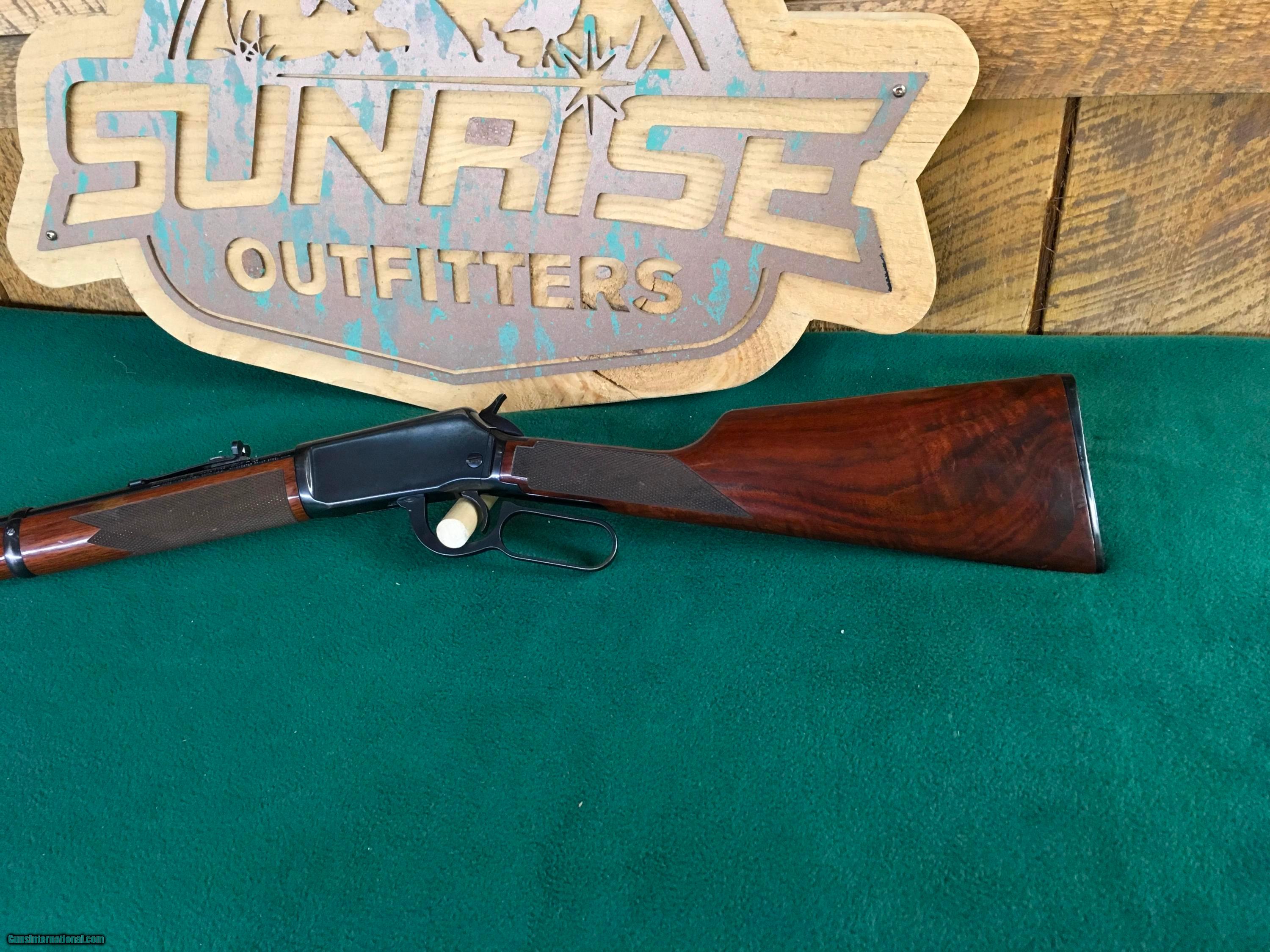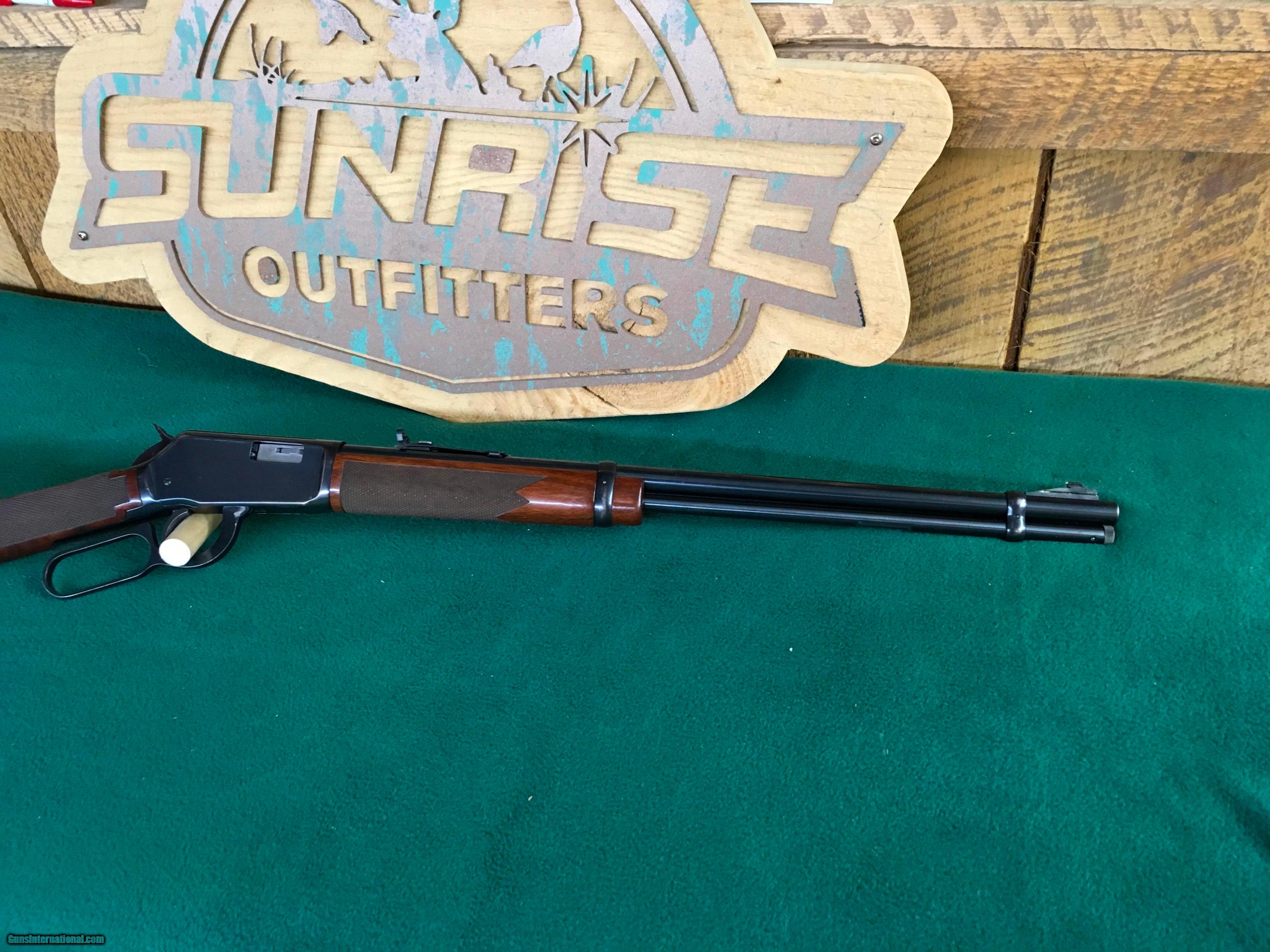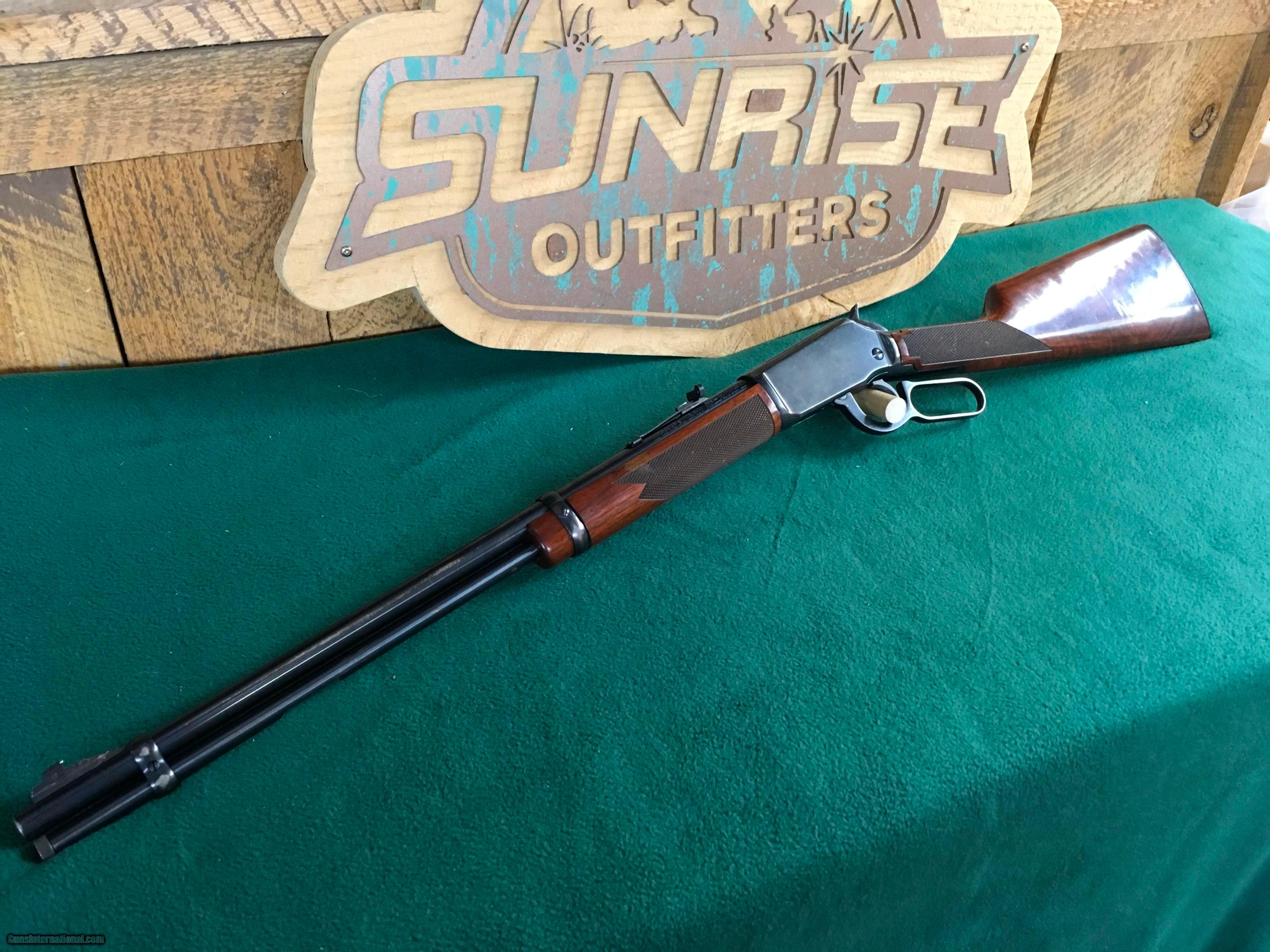 Description: Winchester 94/22 XTR in 22 magnum caliber. Overall this gun would rate very good plus. The action is smooth but yet tight. Bore is bright. The wood still retains nearly all of its original varnish and the deluxe checkering only has a couple or so minor dings. Overall the wood just has minor handling marks from 37 years of honest use. The receiver, barrel and mag tube have about 95-97% blue remaining. Wear is starting to show on edges of frame and some spotting on the barrel. This would be a fine shooter that is still in excellent condition. SOLD |