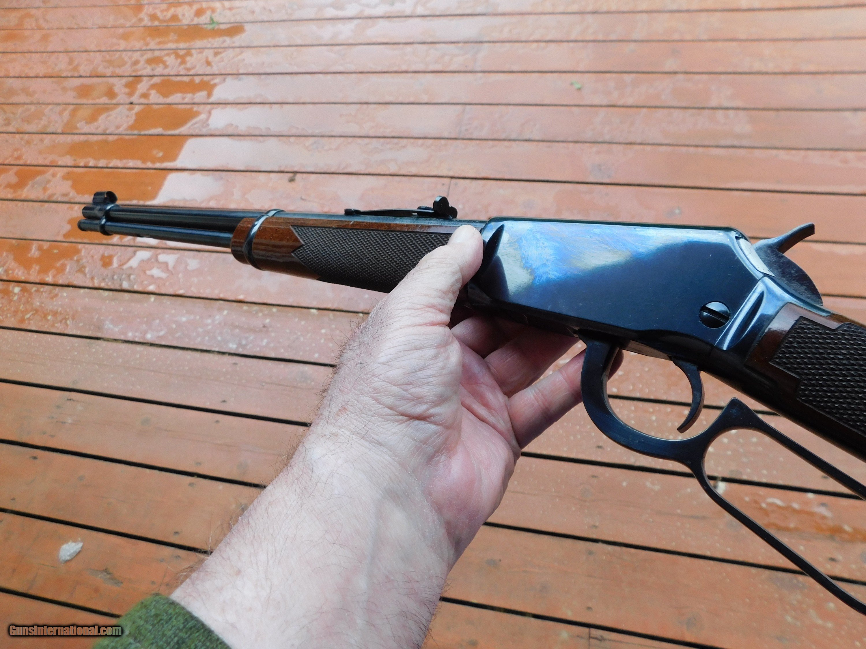 Description: SALE PENDING JAMES A. NC 6/1/25 94/22 XTR Factory Checkered Quality New Haven Ct Made Lever Bargain Price. The XTR stands for extra finish and normally calls for a premium however this gun has been used and not babied...there are some modest marks on the otherwise handsom factory checkered American Walnut Stock Set (no cracks no splits and no repairs or touch up) and a few areas of blue loss on the metal the most significant of which is on the barrel between 2 and 4" or so forward of the forend right side (not terrible bu t its there)..Still has the site hood. We are calling the condition "Fair" but would make a great shooter. Shipping is $ 50.00 WE DO NOT ACCEPT CREDIT CARDS WE WILL NOT REPLY TO "I'M INTERSTED IN THIS GUN" WE WILL NOT REPLY TO "IS IT AVAIL" WE ARE OTHERWISE VERY ACCCOMODATING AND FRIENDLY FOLKS. WE KEEP LONG HOURS SO THAT WE MAY BE REACHED AT ALMOST ANY REASONABLE HOUR ON ONE OR THE THE OTHER OF THE PHONE # PROVIDED. THANKS FOR UNDERSTADING, THERE IS A REAON FOR THESE POLICIES. IF YOU WOULD LIKE TO BUY THIS OR ANY OF OUR GUNS WE SUGGEST YOU PHONE US AND THEN ALSO FOLLOW UP WITH A TEXT OR EMAIL. IF YOU ARE INTERSTED IN A GUN THAT IS UNDER DEPOSIT AND WOULD LIKE TO BE NOTIFIED IF A SIMILAR GUN COMES IN DROP US A LINE AND WE WILL MAKE EFFORTS TO CONTACT YOU WHEN ONE DOES COME IN. WE HAVE OVER 2000 SALES ON ALL SITES WITH AN A+ RATING ON ALL WE ALSO KEEP AN INVENTORY OF OLDER PERIOD CORRECT SCOPES; CALL WITH NEEDS WE MOSTLY PICK VERY CLEAN AND LIGHLTY USED GUNS. WE ARE HAPPY TO TAKE CONSIGNMENT GUNS AND COLLECTIONS OR WILL BUY YOURS OUTRIGHT. WE SOMETIMES ARE EMPLOYED FOR ESTATE PURPOSES AND VALUATIONS. AT THIS TIME WE ARE ONLY ACCEPTING US POSTAL MONEY ORDERS OR BANK CHECKS FOR PAYMENT YOU MUST PROVIDE US WITH THE RECEIVING FFL'S CONTACT INFO OR THEIR LIC COPY IF YOU HAVE IT LAYAWAY PURCHASES NOT COMPLETED ON ANY RETURNED ITEM UNLESS NOT AS DESCRIBED OR DAMAGED ARE SUBJECT TO A 10% RELISTING/RESTOCKING FEE AND MUST BE RETURNED WITH NO NEW MARKS OR SCRATCHES, SENT BACK INSURED, PRIORITY SIGNATURE REQUIRED. ALL INFORMATION CONTAINED HEREIN IS BELIEVED TO BE ACCURATE BUT IS NOT GUARANTEED. WITH ANY OLDER OR USED GUN IT SHOULD BE INSPECTED BY A GUNSMITH PRIOR TO SHOOTING. SOLD |
