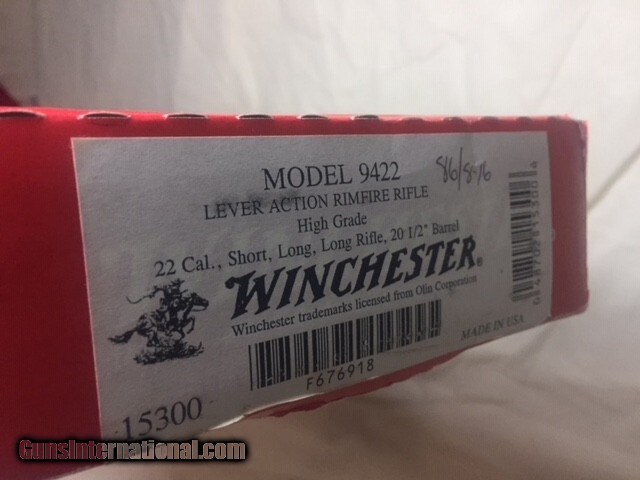 Description: WINCHESTER 9422 HIGH GRADE 22 CAL. . Engraved receiver Raccoon face on left side and coon hound face on the right side, SHORT,LONG, LONG RIFLE, 20 1/2 BARREL, NEW IN THE BOX UNFIRED.ALL PAPERWORK. OR BEST OFFER SOLD |