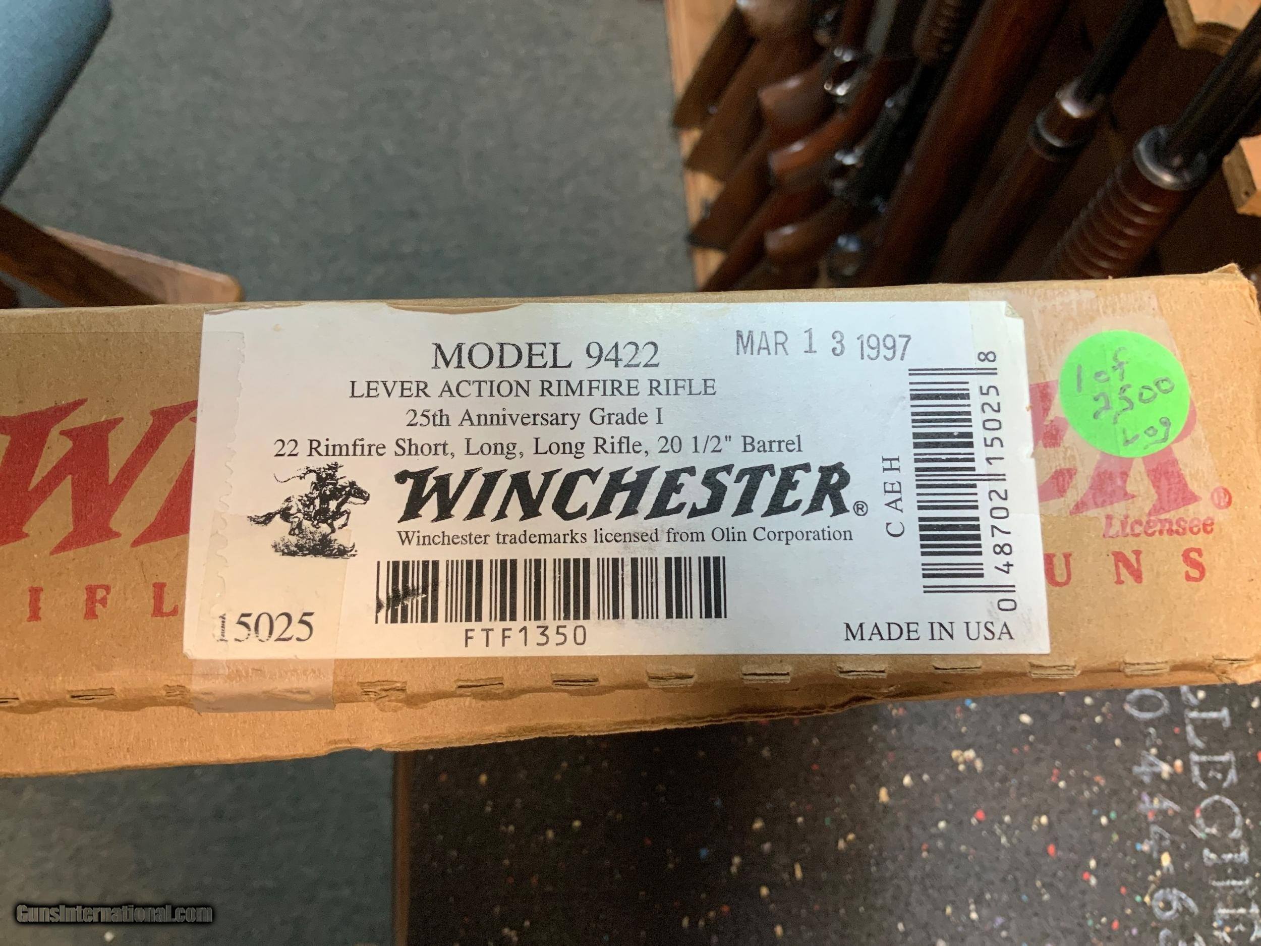 Description: Winchester 9422 lever action rimfire rifle in 22 S,L,L Rifle caliber. New in the box with great wood to boot. The prices on 9422's seem to be going higher daily. Grab these investments while you can whether you collect or shoot. Pictures tell the story of this beauty. Please add $50 for shipping and insurance to your FFL. if your FFL dealer will not except from a private party please add $20 for my FFL dealer transfer fees. SOLD Manufacturer: Winchester Model: 9422 Anniversary Barrel Length: 20 1/2 Caliber Info: 22 Condition: Excellent Metal Condition: Excellent Wood Condition: Excellent Bore Condition: Excellent Action: Lever |