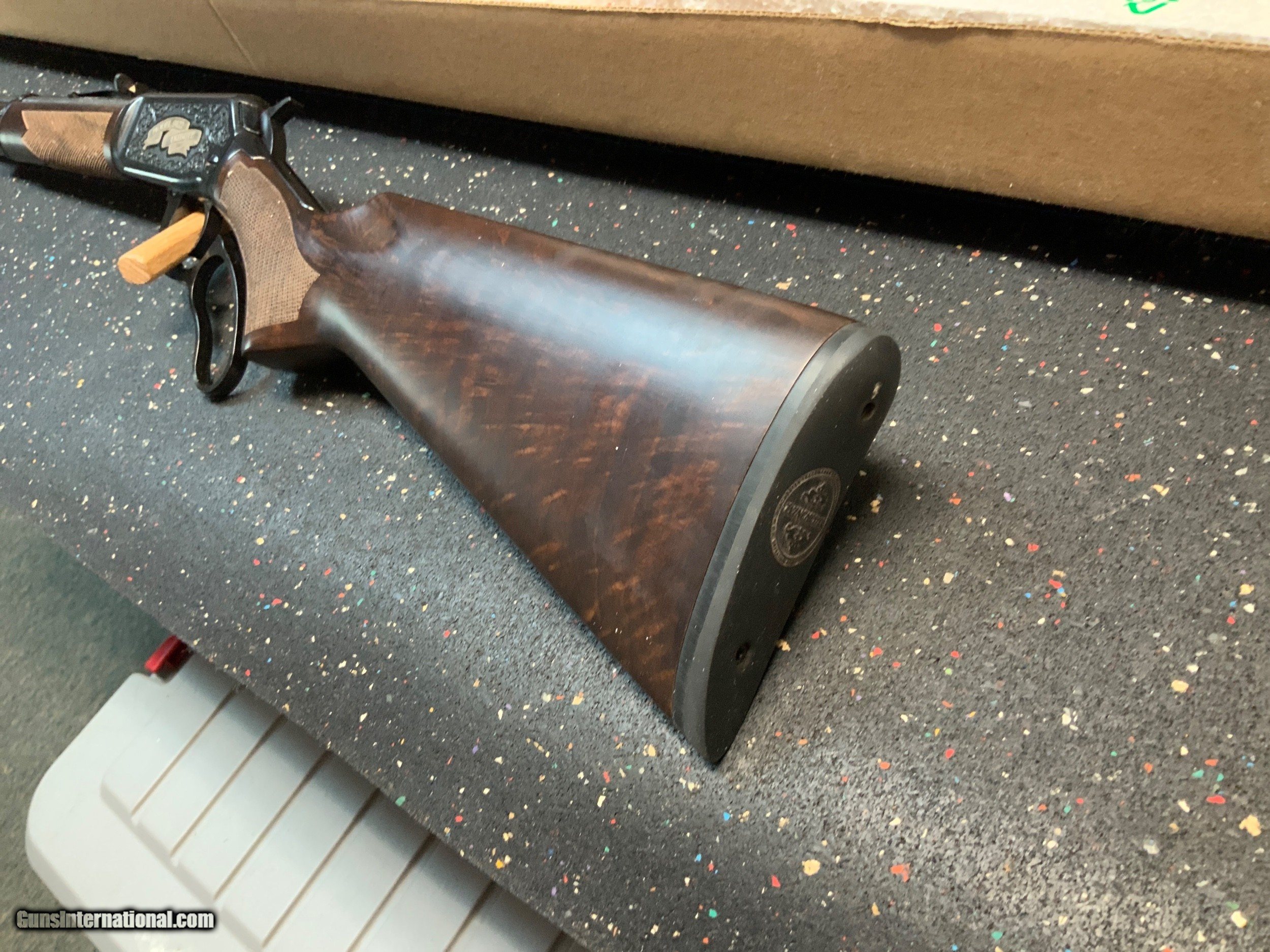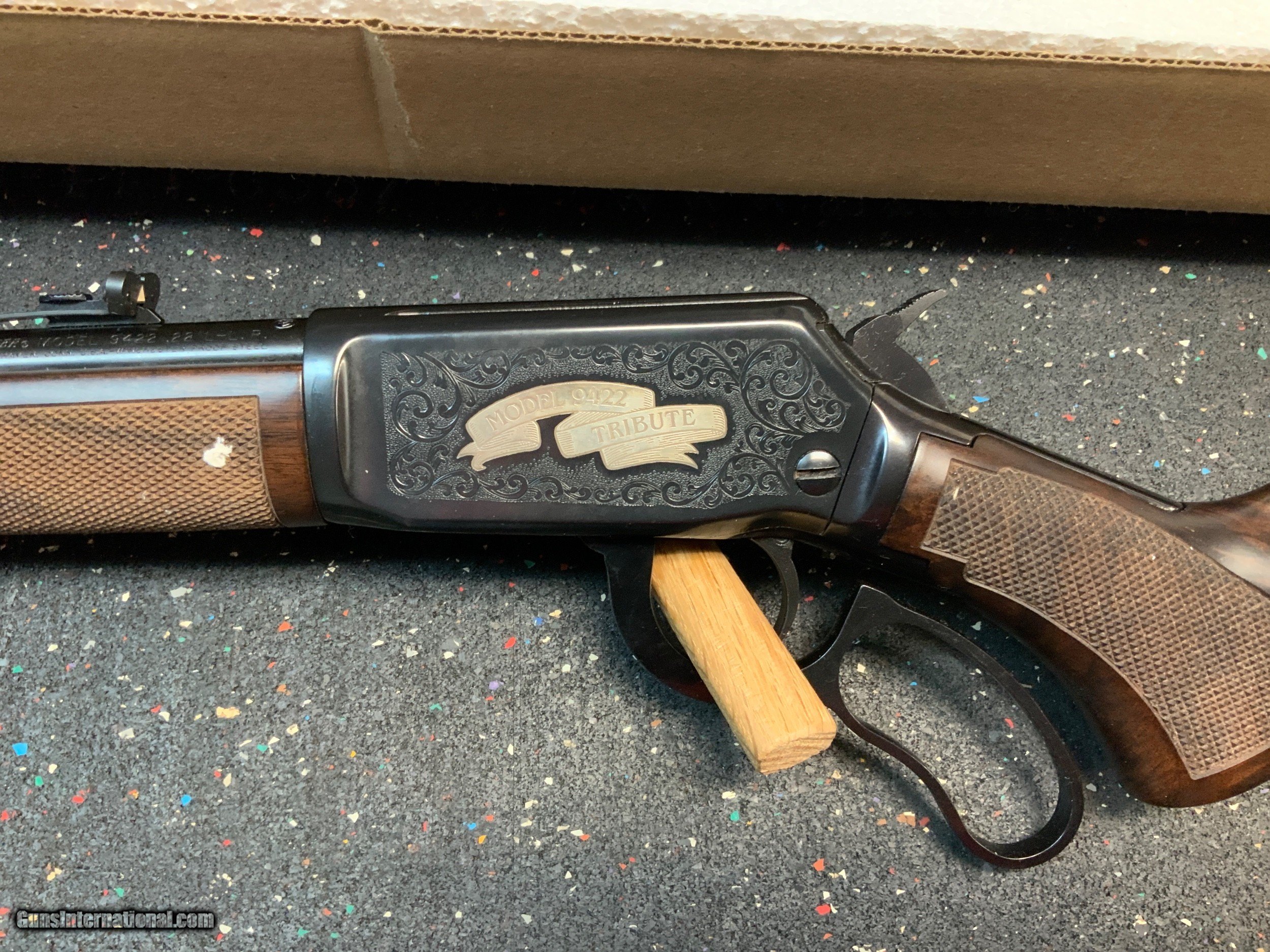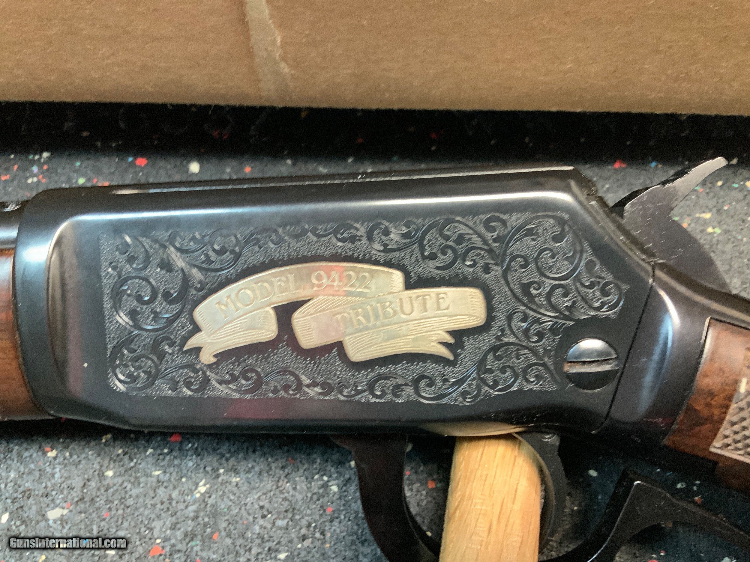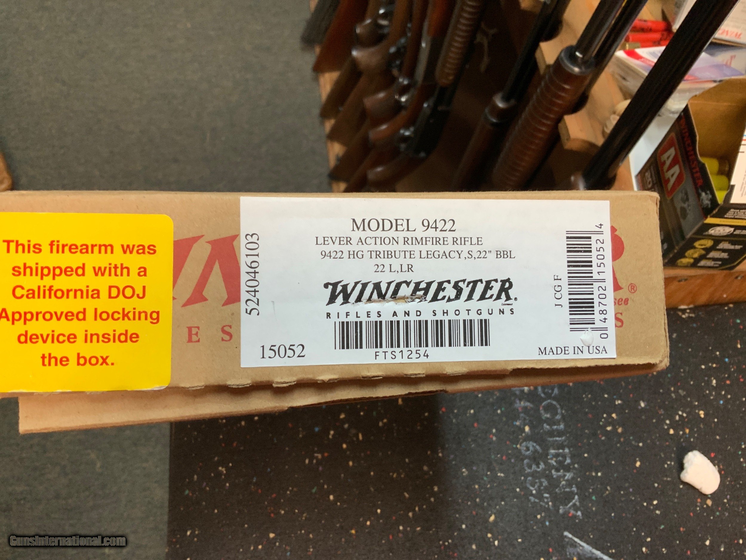 Description: Winchester model 9422 22 long rifle in the High grade Final Tribute Legacy version. Absolutely new in the box with paperwork and outer sleeve. This one supports beautiful dark starburst wood as a bonus. These guns are continuously going up in price and make great investments. Pictures tell the story. Please add $50 for shipping and insurance to your FFL. if your FFL will not except from a private party please add $20 for my FFL transfer fee. SOLD Manufacturer: Winchester Model: 9422 HG Legacy Barrel Length: 22 1/2” Caliber Info: 22 L, L RIFLE Condition: Excellent Metal Condition: Excellent Wood Condition: Excellent Bore Condition: Excellent Action: Lever Finish: Hi- Grade |