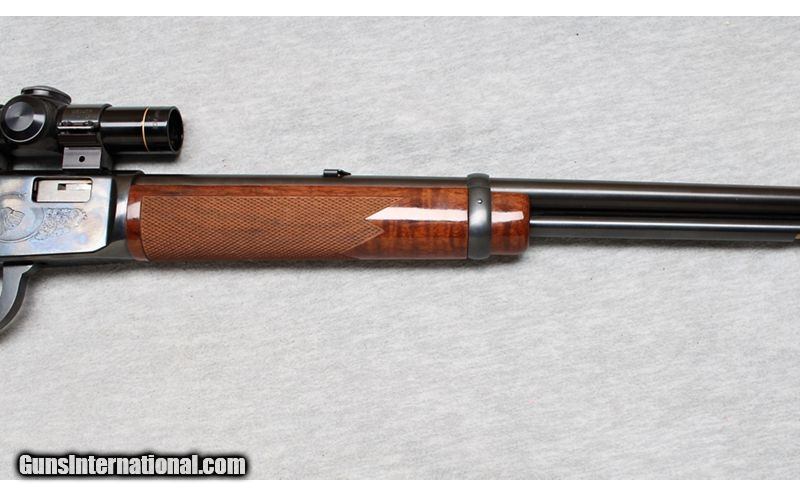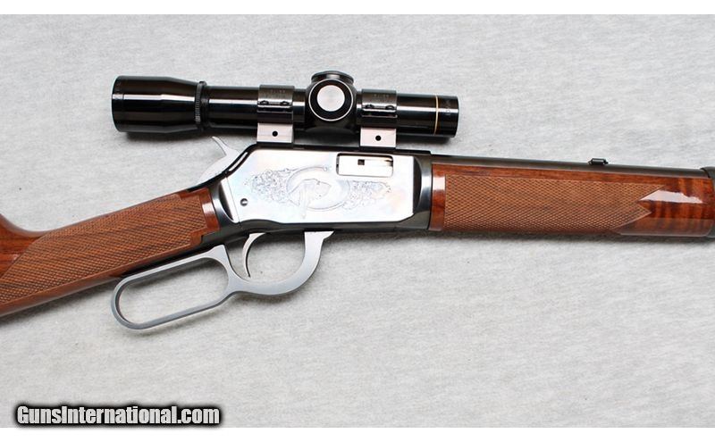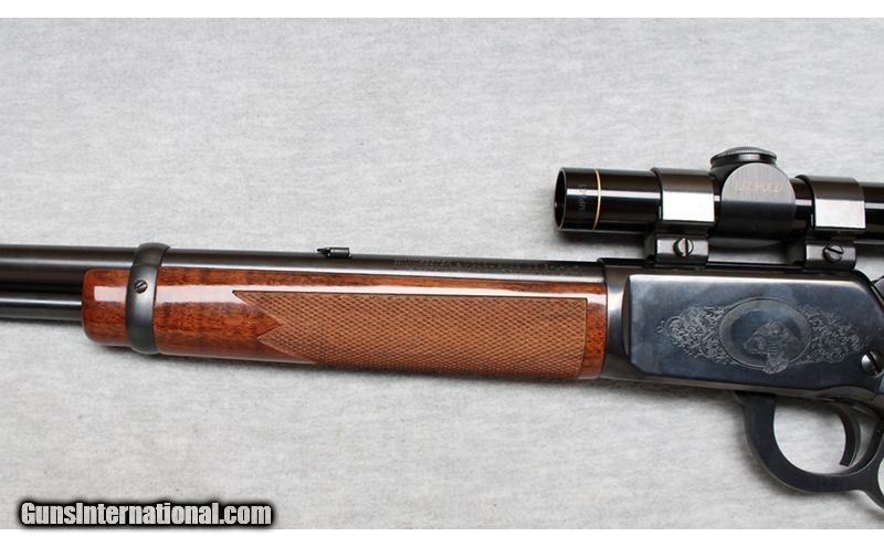 Description: Winchester 9422 High Grade in .22 Long Rifle. This is a lever action rimfire rifle featuring blued finish, engraved receiver, fancy checkered walnut forend & stock, 20" barrel, full length magazine tube under barrel, and a Leupold M8-2.5X Compact. The engraved sides of receiver feature a raccoon on left and a hunting dog on right inside an oval border with a floral scroll. The overall condition is like-new. .22 Long Rifle SOLD Chambers: .22 Long RIfle Metal Condition: Like New Wood Condition: Like New Bore Condition: Bright Barrels: 20 Inches Triggers: Factory Stock Dimensions: LOP 13 3/4 Inches Fore End: Checkered Walnut Butt Pad: Plastic butt plate Sights: Leupold M8-2.5X Compact Item Location: La Vista, NE |
