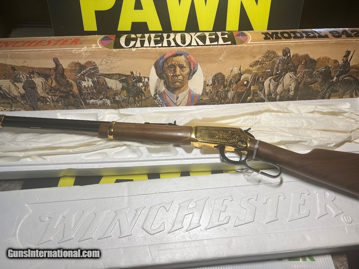 Description: Guns Listing ID: 596372 NEVER FIRED CHEROKEE MODEL 9422 XTR TRAIL OF TEARS 1839 SHOOTS .22 L S LR BUTT STOCK HAVE SOME AGING AND LEVER ACTION HAS SOPE PATINA SEE PICTURES COMES WITH ORIGINAL BOX AND PAPERS 4000 MADE SOLD Manufacturer: WINCHESTER Model: 9422 Never Fired Caliber Info: 22 CAL Condition: Used - Non-Certified Barrels: 20 BARREL Finish: GOLD PLATED |