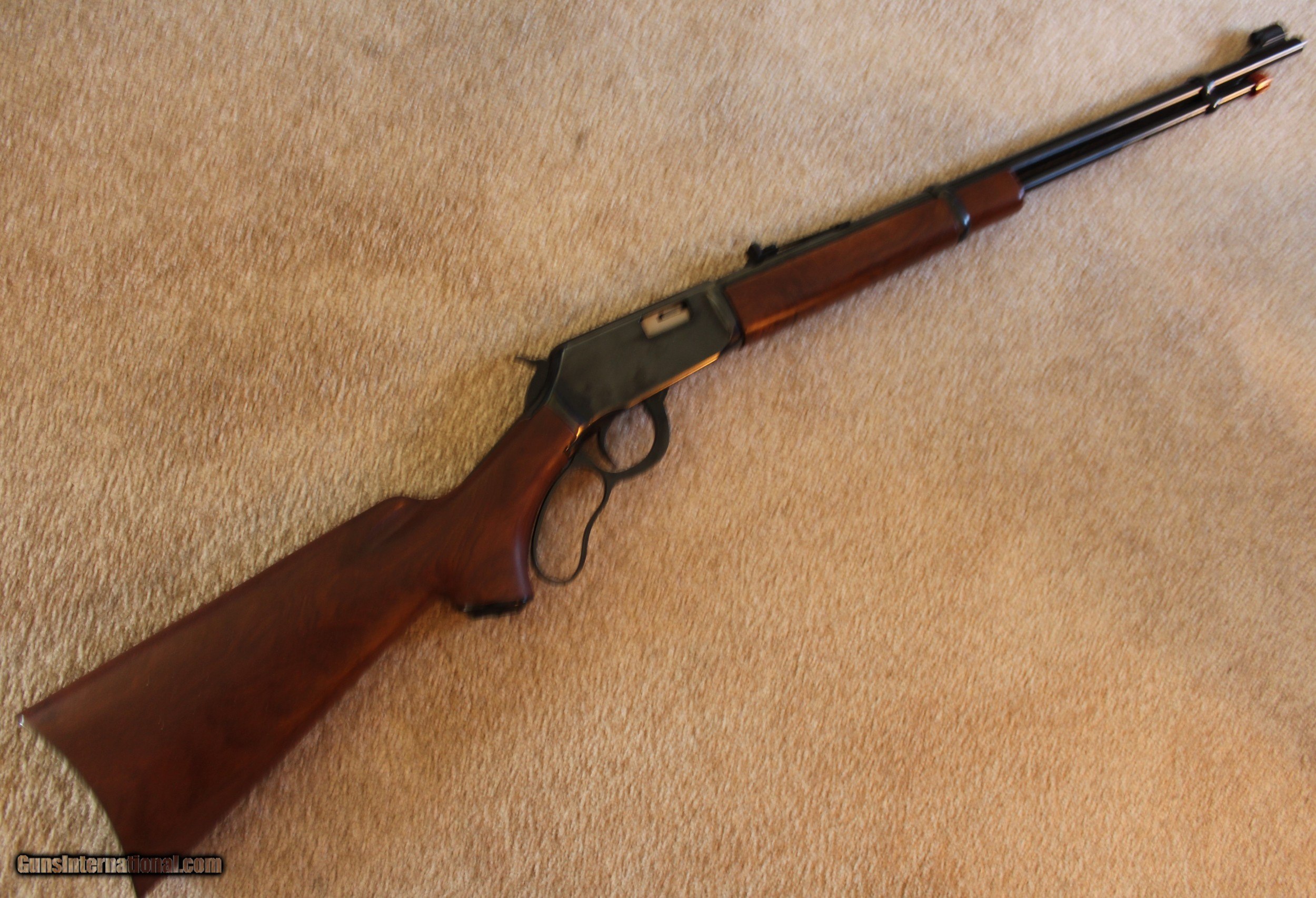 Description: Winchester 9422 XTR Classic lever action rifle in 22 caliber. This is a deluxe lever action rifle chamberered in 22 caliber. This XTR Classic model will shoot 22 short, long, and long rifle and is so maked on 22.5" round barrel. Walnut forearm with barrel band, satin finish plain pistol grip, American walnut stock with no checkering. This model 9422 was manufactured between 1985 and 1987. Rifle appears unfired and is in 99% condition overall. The wood has excellent figure showing in the grain of the buttstock and forearm, with no marks, nicks or scratches. No box but do have the instruction manual. A beautiful 35 year old classic rifle. Ship to FFL only. Buyer pays $35.00 Shipping & Insurance. Cashiers check only. SOLD |
