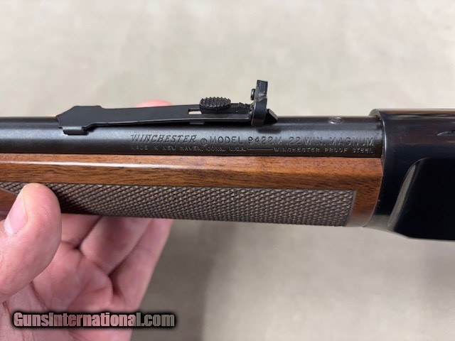 Description: A near mint WInchester Model 9422 Lever Action in caliber .22 Magnum, with select checkered walnut stock and forend, etc. It would appear that this rifle has seen very little use (if any), being a closet queen for most of its life. No box but it would be very difficult to improve upon. SOLD |